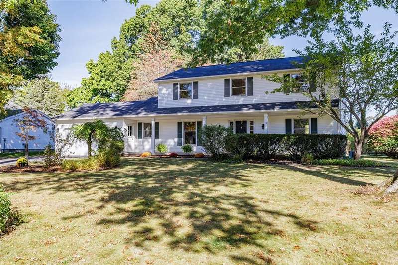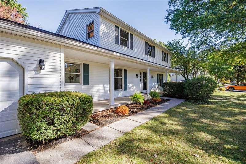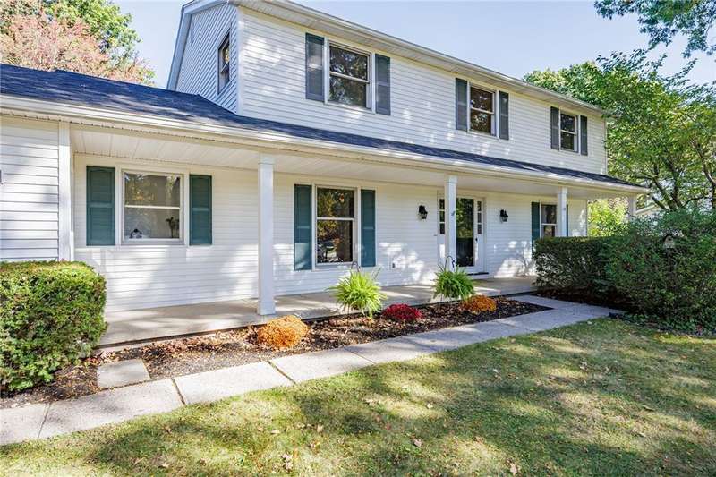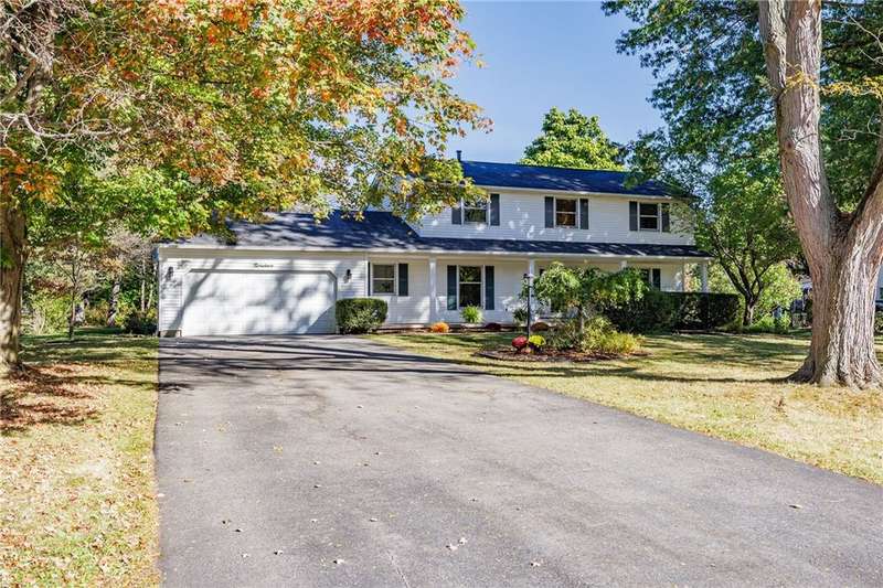 Experience classic elegance in this spectacular Center Entrance Colonial located in the sought-after Pittsford School District! Spanning 2,593 sq ft, this light-filled four-bedroom, two-and-a-half-bath home features gleaming hardwoods throughout, an upgraded kitchen with a grand island and breakfast bar, and designer glass cabinetry with built-in lighting for a show-stopping effect.Embrace comfort in the stunning family room with sliders opening to a sprawling deck, ideal for entertaining or relaxing. A fire-placed bonus room awaits your favorite book, game night, or home office needs. The spacious dining room boasts a picture window with serene views of the covered porch, while the formal living room showcases flawless updated hardwood floors and ample natural light.Upstairs, each of the four generous bedrooms offers privacy and style, complemented by convenient second-floor laundry and abundant storage. The luxurious primary suite features a walk-in closet and a private bath. Outside, enjoy your peaceful retreat on just under half an acre, surrounded by mature trees and vibrant plantings?a perfect haven for outdoor fun and relaxation. Mechanics including HVAC & hot water tank were installed in 2012.Perfectly positioned near Wegmans, I-490, Eastview Mall, the Village of Fairport, parks, and dining, this home combines tranquility with unbeatable convenience. Make memories in this move-in-ready gem?delayed negotiations begin Thursday, 10/16/2025, at 5:00 PM!