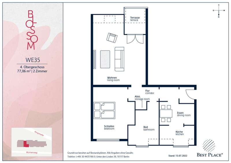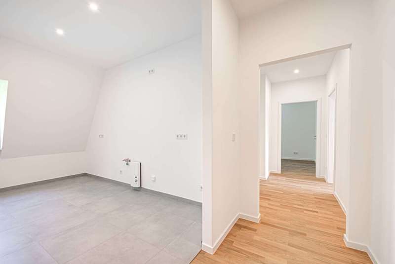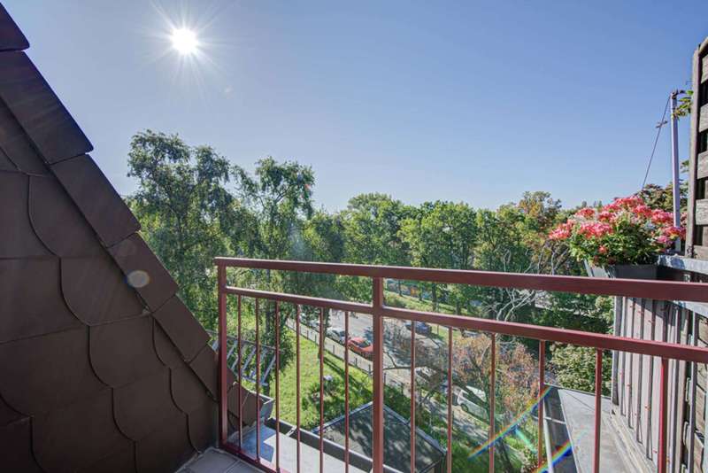 Living on the sunny side: In this sunny 2-room flat on the 4th floor, you can enjoy peace and quiet as well as plenty of light and a fantastic panoramic view of the greenery. Freshly renovated to a high standard, this sunny flat is a sound investment - and, if desired, a beautiful new home from January 2026. The living room with space for a large, cosy seating area provides access to the terrace with room for a small table and two chairs. Thanks to its south-facing orientation, you can enjoy the sun here - perfect for breakfast or to round off the day with a glass of wine. The view from here sweeps into the garden and the surrounding green spaces. The high-quality daylight bathroom combines elegance with modern comfort; a highlight is the bathtub under the sloping roof. And after a relaxing bath, you can look forward to cosy, warm towels from the heated towel rail. The practical floor plan ensures that the living, sleeping, dining and cooking areas are separated from each other so that you can enjoy space for development and privacy. For example, you can relax and chat with your guests in the dining room while your partner is already asleep. Through the dining room you enter the separate kitchen, your feel-good place to cook and enjoy. IMPORTANT: There is a lock-in period of 1.5 years. The flat is available for owner-occupation from 2026.