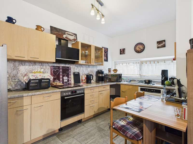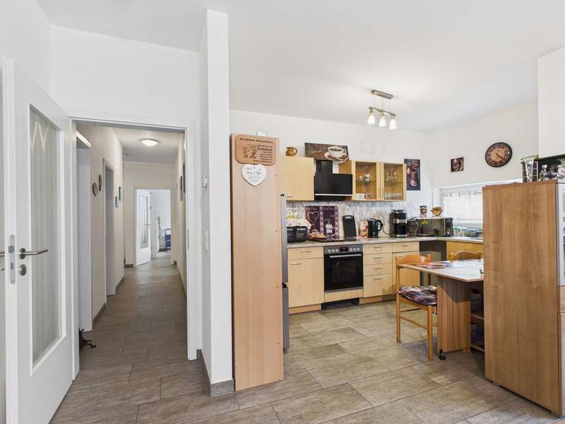 A sunny, high-quality 3-room apartment in a prime location in Wernsdorf is available to rent. The apartment is located on the upper floor of an attractive apartment building - right in the center of Wernsdorf. In addition to the good infrastructure of Wernsdorf and the excellent proximity to nature and water, the region offers a high leisure and recreational value after work and at weekends. The lake and the bathing area are within walking distance of the apartment. The total living and usable area is approx. 79 m² and is distributed over an open-plan living and kitchen area, a bedroom and a study/guest or children's room. The living room is bright and offers a view of the green backyard facing south-west. A high-quality bathroom with bathtub, shower, washbasin and WC is located in the middle of the apartment. The bathroom has a window, providing fresh air and natural light. Directly adjacent to the bathroom is an additional storage room with approx. 5 m² of usable space. Here you will find the connection for the washing machine, the dryer and further usable space for everyday household utensils. A large, bright corner window allows the morning sun to shine into the bedroom. The entrance to the residential unit is on the street side and leads directly to the upper floor via a bright staircase. The apartment is ideal for couples or a family of up to 3 people. The fitted kitchen and tumble dryer can be taken over from the previous tenant for 300 euros. PARKING SPACE FOR CARS: A paved courtyard with a parking space is available for rent. The courtyard entrance is easily accessible via a remote-controlled electric gate. The courtyard is completely fenced in and offers security for all tenants and cars. NOTE: The apartment is available from 1.10.2025 and is managed by a property management company. A two-year notice period is desirable. DOCUMENTS for the landlord: - Current Schufa and self-disclosure from all tenants - No rental debts of the previous tenant - last 3 salary statements or BWAs for self-employed persons - Pets after consultation with the landlord