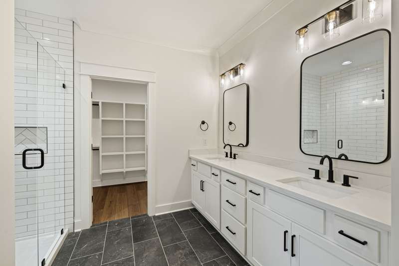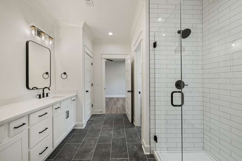 Welcome to one of Smyrna's most impressive new construction homes! This stunning 4 bedroom, 3 bath residence is the perfect blend of modern design, thoughtful layout, and high end finishes. Step inside to a welcoming entry foyer, where you'll find a full bathroom and private bedroom tucked conveniently to the side perfect for guests or a home office. The heart of the home is the open-concept living room and designer kitchen, featuring soaring ceilings and a formal dining area, ideal for entertaining. The main level primary suite is truly a retreat, boasting generous space and a spa-like bathroom with double vanities, quartz countertops, tile flooring, and a marble tiled shower. The custom walk-in closet with built-in shelving adds a luxurious touch. Upstairs, you'll find two oversized bedrooms, a full bath with double vanities, a cozy sitting nook, and a spacious bonus room perfect for a playroom, media space, or home gym. Enjoy outdoor living with a private backyard and covered porch, and take advantage of walk-in attic storage, a well designed floor plan, and premium designer finishes throughout. Located just 3 minutes from Sam Ridley Parkway, this home offers unbeatable convenience and exceptional value.
