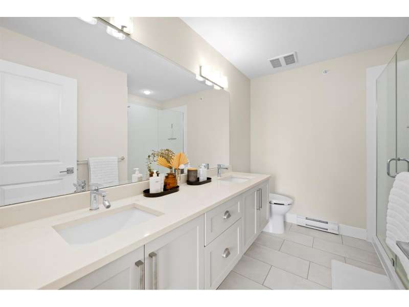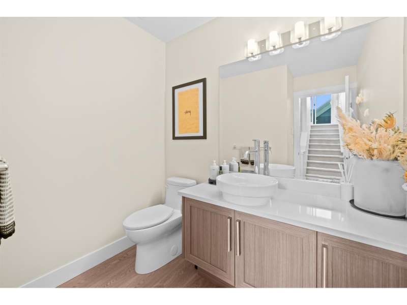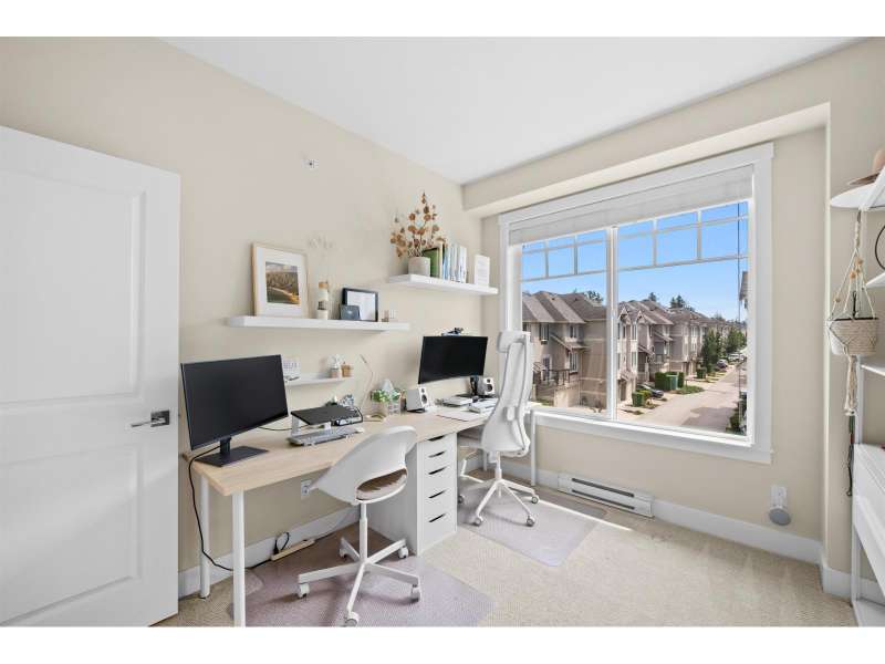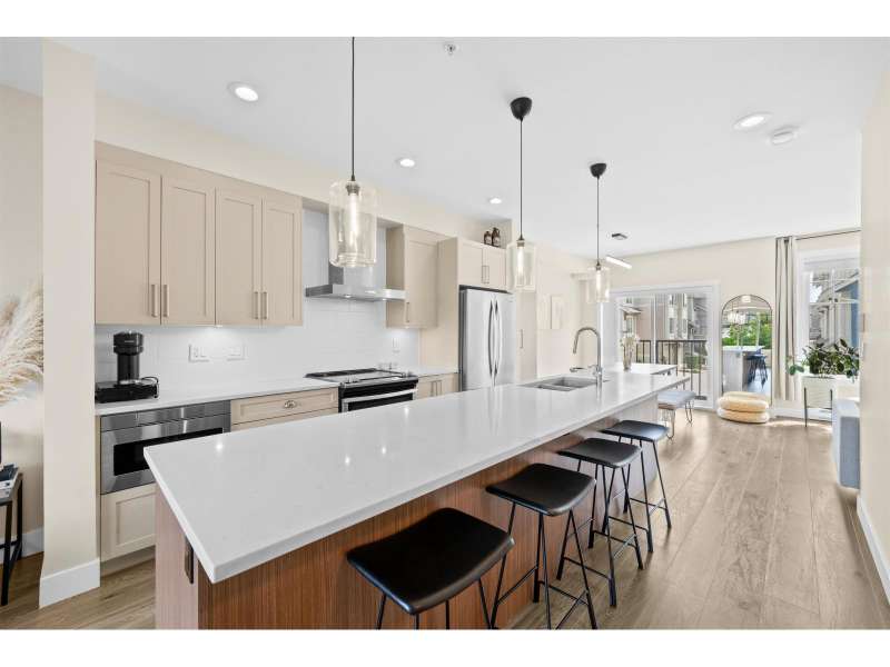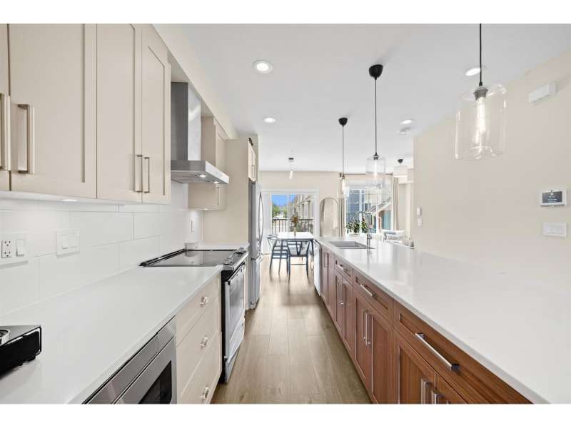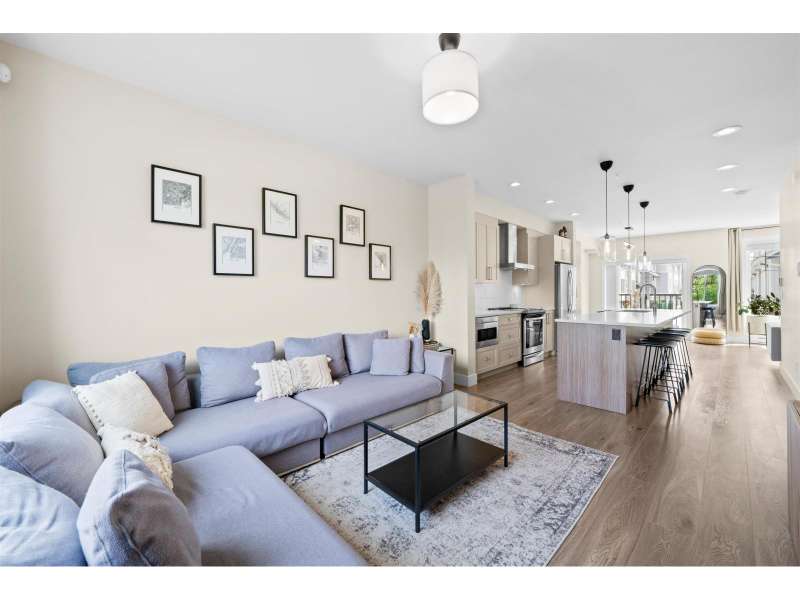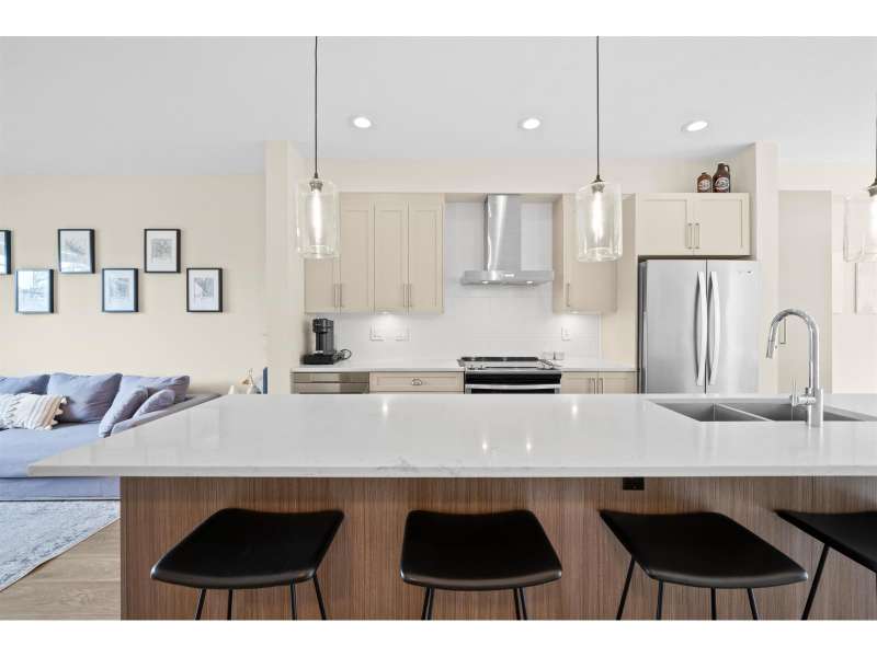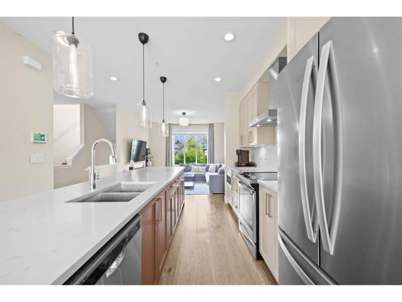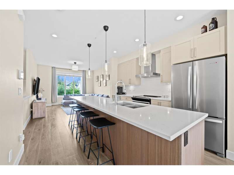 Welcome to Gabriola Park! This 4 bed 4 bath, 1,877 sq ft townhome is located on the desirable side of the complex, facing 82nd Ave with the rare convenience of street parking right out front. The open main floor features 9' ceilings, updated lighting, and a stunning 12 ft kitchen island-perfect for gathering. Upstairs you'll find three generously sized bedrooms, including a spacious primary with walk-in closet and ensuite with dual vanity. The lower level offers a private 4th bedroom with full bath, ideal for in-laws, teens, or a home office. Enjoy a full side-by-side double garage with sleek epoxy flooring and bonus storage space. Just steps to Donna Gabriel Robins Elementary, Yorkson Middle, Willoughby Town Centre, parks, and more. (id:58403)