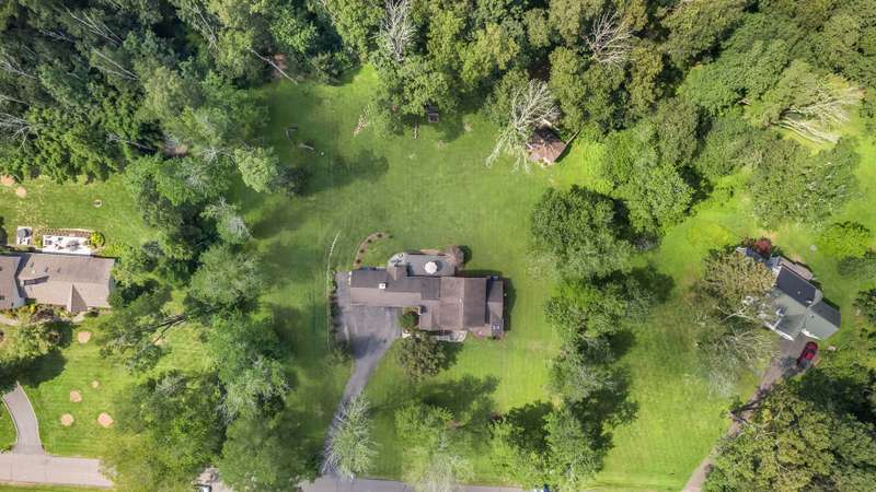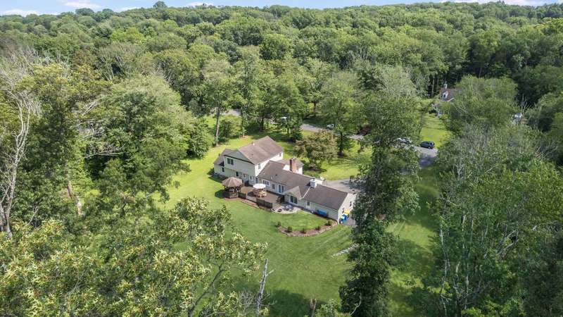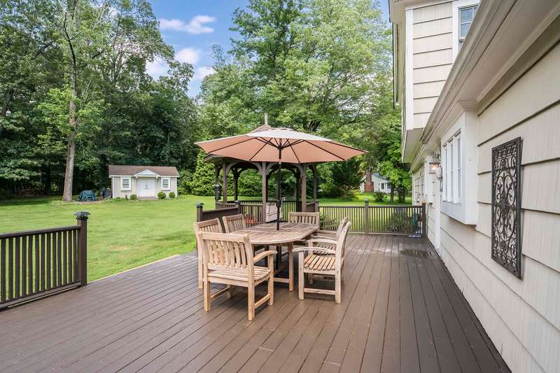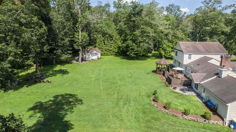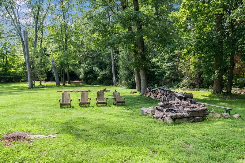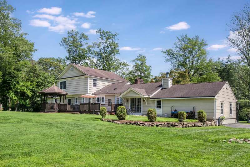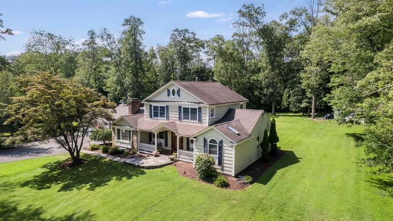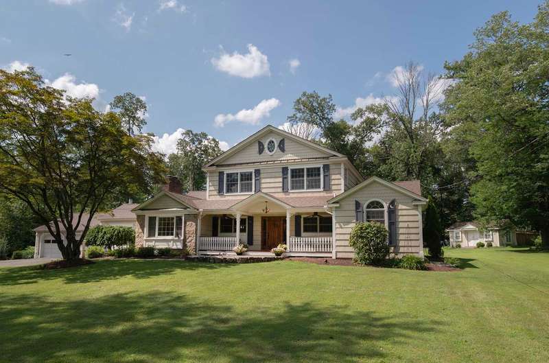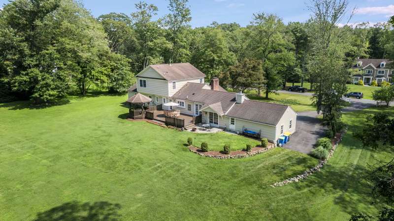 Set on nearly two picturesque acres, this beautifully maintained expanded ranch blends timeless charm with modern updates. Custom moldings, a striking stone fireplace, a newly renovated primary bath, and an open-concept layout elevate the home’s appeal. A covered porch welcomes you into this tranquil setting. Inside, an expansive foyer leads to the formal living room with a fireplace, perfect for gatherings. The dining and family rooms open to a generous deck that overlooks the vast, private backyard offering an ideal setting for entertaining or quiet outdoor enjoyment. Style and function combine effortlessly in the kitchen featuring stainless steel appliances, granite countertops, and custom cabinetry. Also on the main level is a spacious primary suite with a newly updated bath, along with a second bedroom with an adjacent full bath. A convenient powder room is located off the kitchen and near the staircase to the lower level. Upstairs, you’ll find three additional bedrooms and a full bath, offering plenty of space for the entire household and guests. Located just minutes from top-rated schools and a short drive to downtown, this special home offers the perfect combination of comfort, space, and convenience.