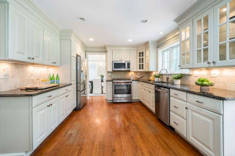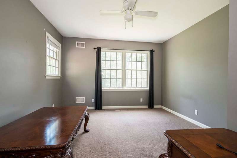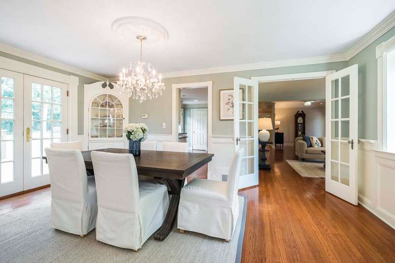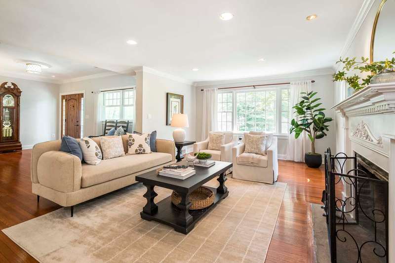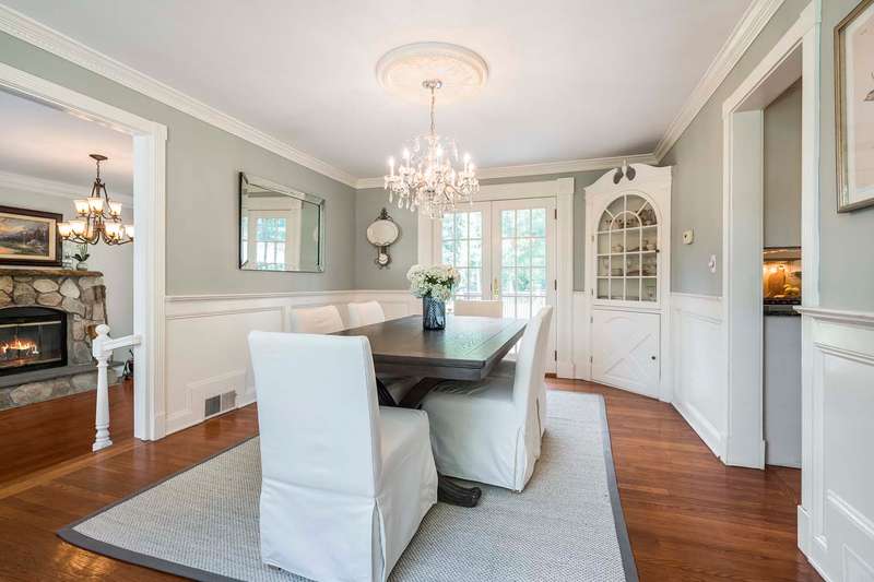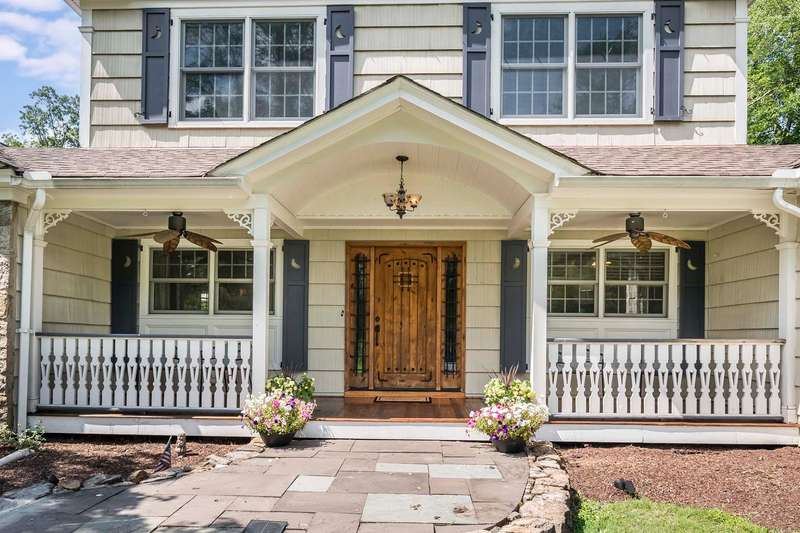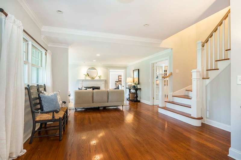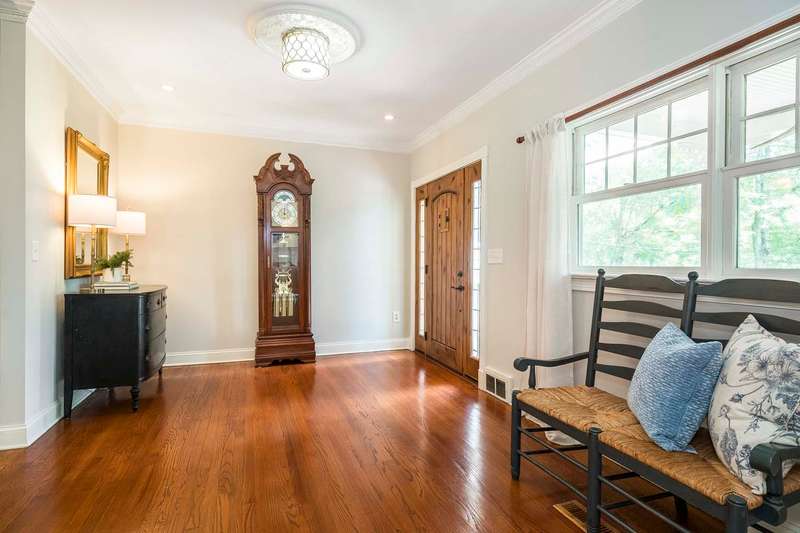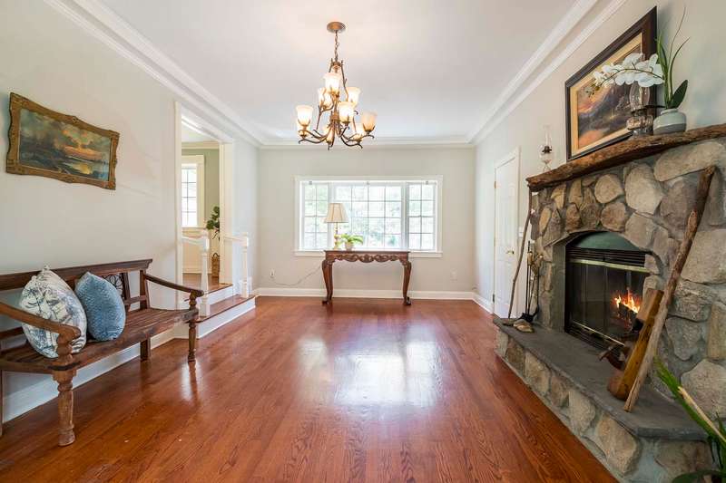 Set on nearly two picturesque acres, this beautifully maintained expanded ranch blends timeless charm with modern updates. Custom moldings, a striking stone fireplace, a newly renovated primary bath, and an open-concept layout elevate the home’s appeal. A covered porch welcomes you into this tranquil setting. Inside, an expansive foyer leads to the formal living room with a fireplace, perfect for gatherings. The dining and family rooms open to a generous deck that overlooks the vast, private backyard offering an ideal setting for entertaining or quiet outdoor enjoyment. Style and function combine effortlessly in the kitchen featuring stainless steel appliances, granite countertops, and custom cabinetry. Also on the main level is a spacious primary suite with a newly updated bath, along with a second bedroom with an adjacent full bath. A convenient powder room is located off the kitchen and near the staircase to the lower level. Upstairs, you’ll find three additional bedrooms and a full bath, offering plenty of space for the entire household and guests. Located just minutes from top-rated schools and a short drive to downtown, this special home offers the perfect combination of comfort, space, and convenience.
