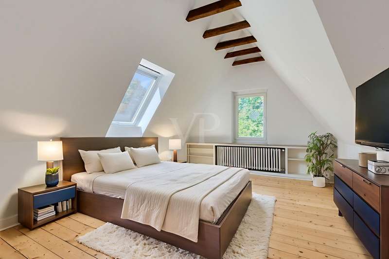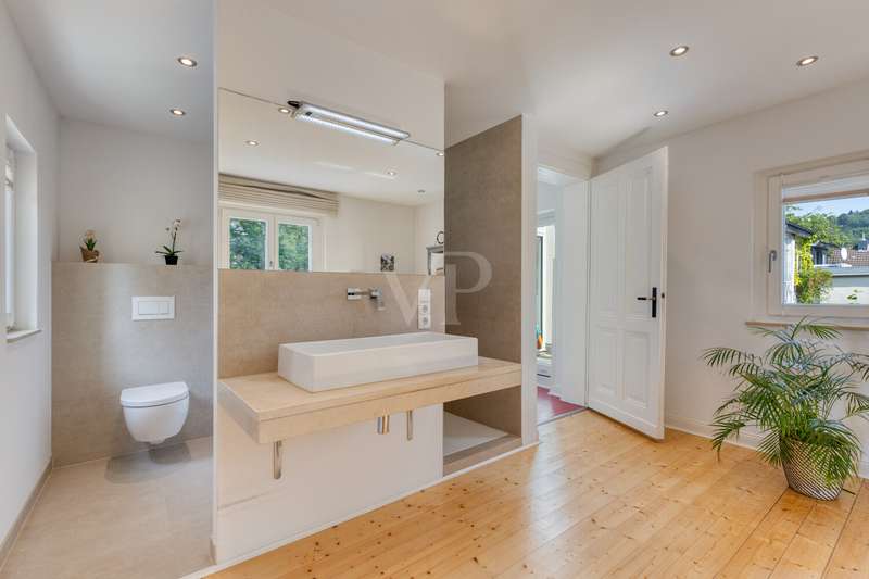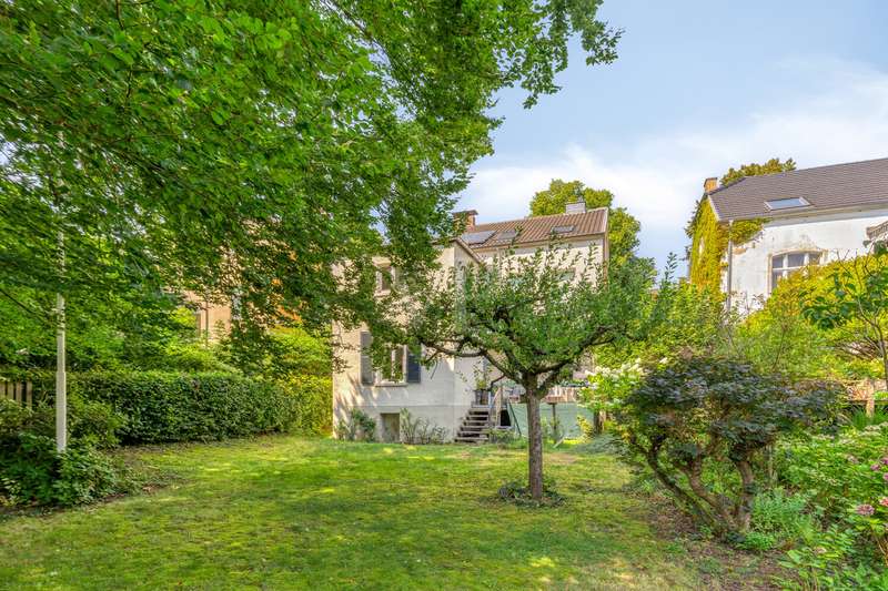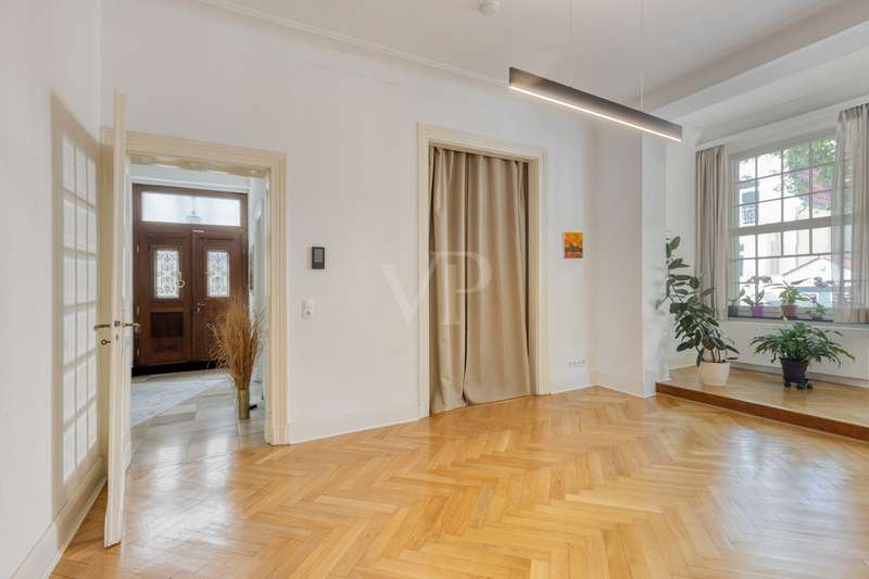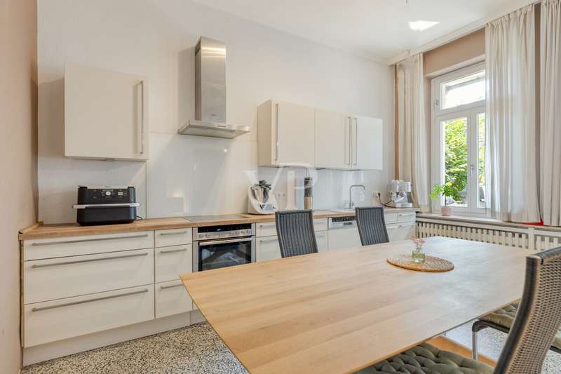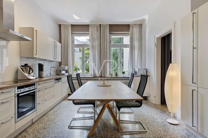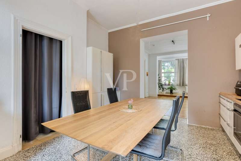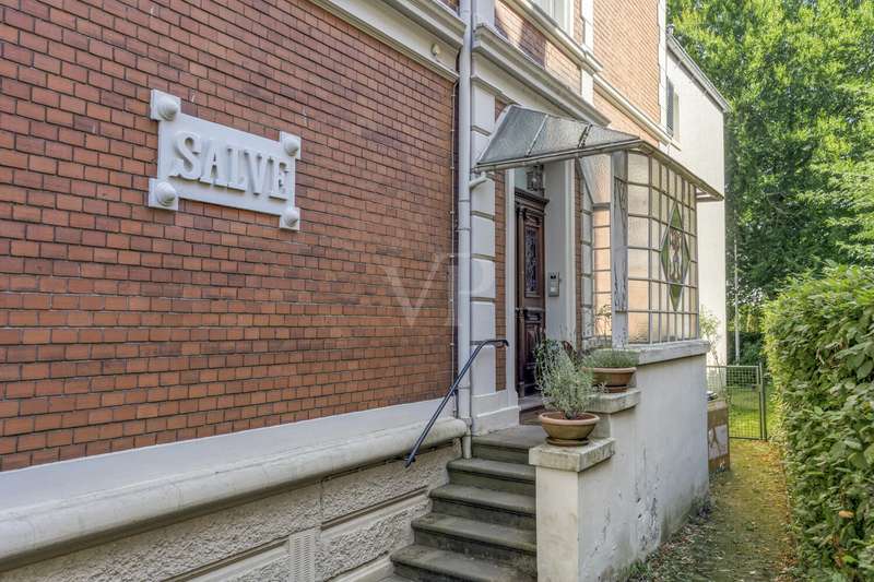 This attractive villa, built in 1897, combines historical charm with contemporary living comfort. With a generous living space of approx. 284 m² and a total of 9 living rooms and bedrooms, the house offers numerous possibilities for individual use - whether for families, couples with space requirements or for prestigious living and working under one roof. The listed villa is situated on a plot of approx. 615 m² and was last extensively modernized in 2017. Numerous aspects of the property were renovated to a high standard, including the roof (including skylights), both bathrooms, most of the windows, the wooden floors and the characteristic terrazzo floor in the kitchen. In addition, the sewage pipes in the basement were renovated, including the associated backflow protection, so that the property is as technically impressive as it is visually. The natural stone flooring catches the eye as soon as you enter the entrance hall and creates a prestigious first impression. The original staircase and many other lovingly preserved stylistic elements underline the special character of this house. The space is spread over three floors: a total of 9 rooms allow for flexible living concepts and offer plenty of room for individual design ideas. The two modernized bathrooms impress with their high-quality fittings and timeless design. There is also a guest WC. The central gas heating ensures cozy temperatures on cool days and rounds off the energy and comfort concept. Another highlight of the villa is the spacious fitted kitchen, which impresses with modern appliances and ample storage space. It directly adjoins the terrace - a pleasant place for socializing in the open air. The well-kept garden offers many possibilities for use, whether for gardening enthusiasts, children playing or relaxing hours outdoors. The house is technically up to date. A doorbell and intercom system is installed on each floor, which increases both security and living comfort. The high-quality furnishings extend to all rooms: parquet and wooden floors in the living and sleeping areas, stylish wallpaper and paintwork as well as carefully refurbished details. This well-kept property impresses with its successful combination of historical architecture and comprehensive modernization. It offers discerning residents contemporary living with a special flair - combined with the certainty of moving into a house with substance and history. If you value spaciousness, timeless stylistic elements and high-quality fittings, this villa is a convincing choice. If you have any questions or would like to arrange a viewing appointment, please do not hesitate to contact our team.