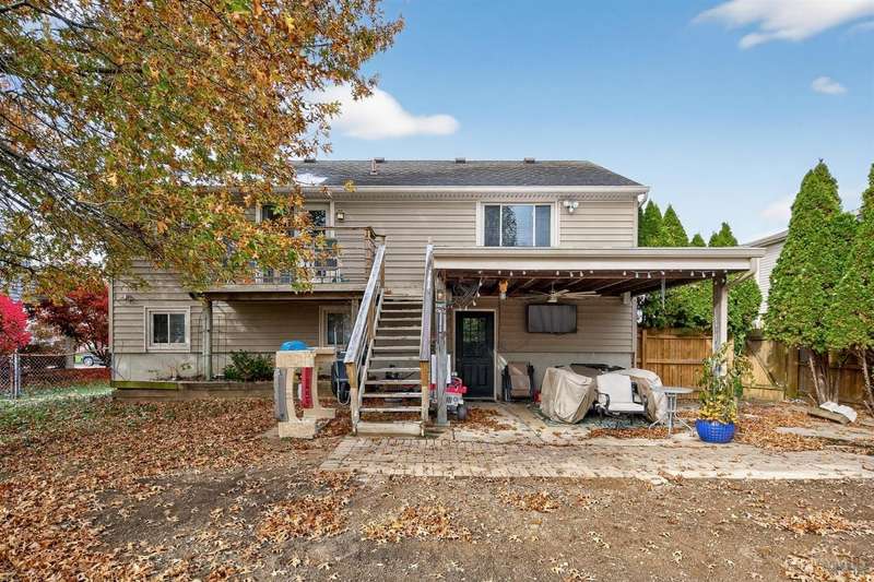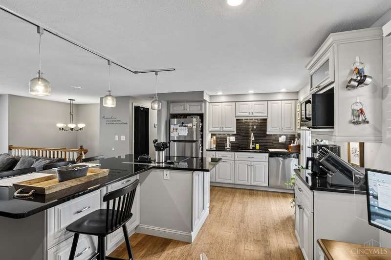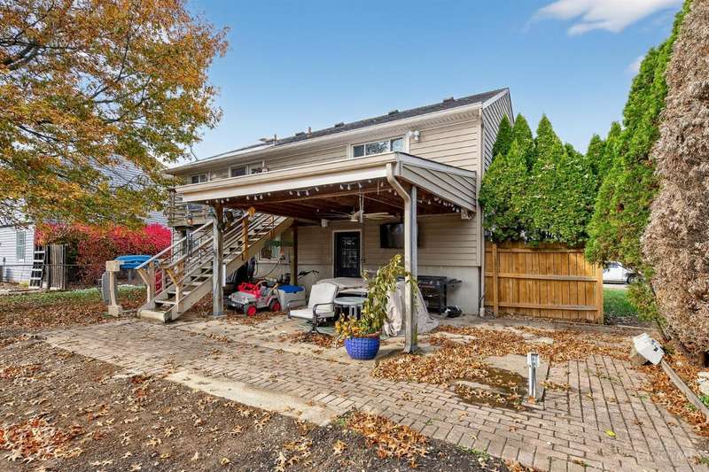 A must-see bi-level with lots of beautiful upgrades! Handsome hardwood floors on the 1st floor. Renovated kitchen with a large cooking island, featuring a top-of-the-line flat top stove that has an electric pop-up exhaust fan and a double oven!! Kitchen is open to the living room - perfect for entertaining. Primary bedroom has an adjoining Jack n' Jill bathroom. Lower level is finished with a brick fireplace. Outside has a large, covered patio, great for that summer grill out!