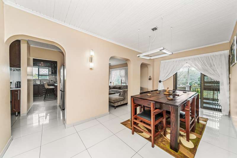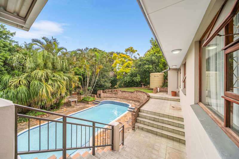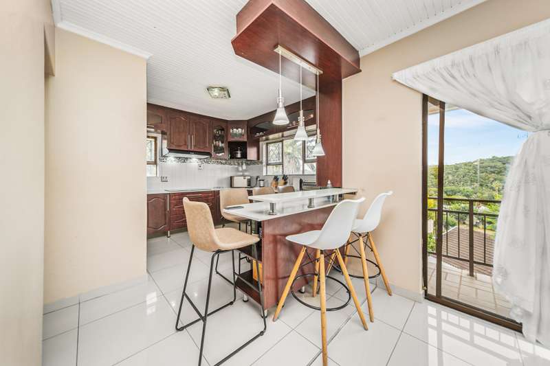 This charming family home is designed for comfort and convenience, featuring an open-plan layout that seamlessly connects the lounge, dining room and family room (complete with air conditioning) to the modern kitchen – perfect for families who love to gather together. The four bedrooms, along with a newly renovated family bathroom, are located down a peaceful hallway, while the main bedroom boasts its own dressing room and full en-suite bathroom. Laminate flooring in the bedrooms adds warmth and a homely feel. Enjoy your morning cuppa or your after undowners from the large undercover balcony overlooking the valley, pool and garden. Outdoors, you’ll find a four-car Garage, and an outside helper’s room with an en-suite bathroom. The property is equipped with a sparkling pool, pool room, solar geyser, inverter and a water tank to efficiently manage water for the pool and garden. Situated in a tranquil suburb with beautiful valley views and close proximity to the river, the property offers a peaceful lifestyle for any family. Call me to arrange a viewing