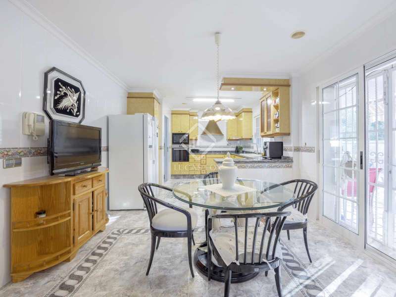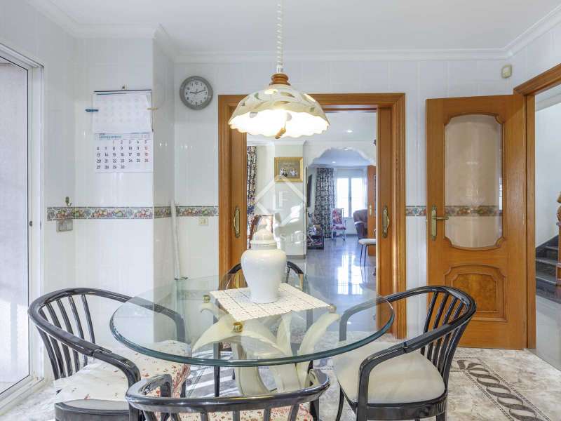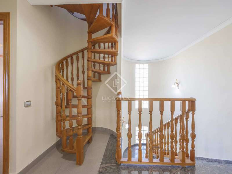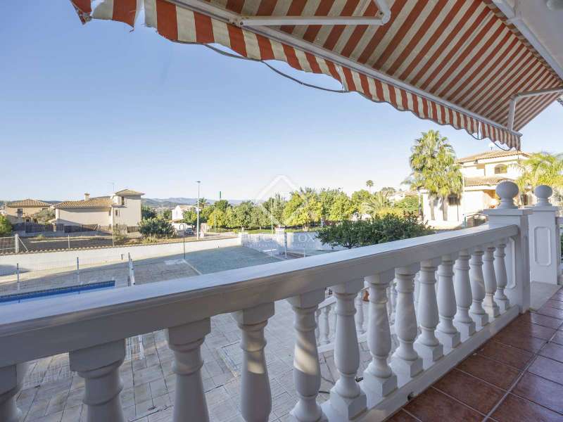 Lucas Fox presents this family-friendly house strategically located in the upper area of a plot of more than 1,000 m², with good views over the town of Riba-Roja de Turia. The property has large spaces with a very practical layout , on three floors. The main floor presents the living room, dining room and kitchen in independent rooms, but with fluid communication between them. From different points on this floor we will have access to a large southerly aspect exterior terrace and from the kitchen we can access a covered glazed terrace with views of the garden. The kitchen is of good size and has a utility room area. On this same floor, there is also a full bathroom with a shower and a double bedroom . The upper floor is distributed in two double bedrooms, another bedroom, a complete bathroom with a shower, an study and the main bedroom with a private bathroom, dressing room and private terrace. From this floor and through a wooden spiral staircase we will go up to a small open-plan attic ready to give it the most convenient use. The lower ground floor also offers large dimensions, with a garage with capacity for several vehicles, as well as a dressing room with bathroom and shower, kitchen, wine cellar and storage room. Exterior we will find a garden with palm trees, fruit trees and large spaces with artificial grass, a barbecue area fully prepared for your use and enjoyment and an 8 x 5 meter swimming pool. On the other hand, a plot of approximately 700 m² is offered, next to the house, which would also be available for sale. In addition to its good qualities, the property presents all kinds of amenities and amenities, such as underfloor heating, solar panels, water softener, split air conditioning, spacious garage, swimming pool and barbecue. Contact us so we can offer you more detailed information and organize a personalized visit to this fantastic property.