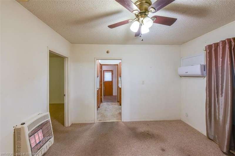 2 bed 1 bath home with vinyl siding, covered parking, metal roof, vinyl siding, front porch, mini split HVAC, gas heat, and more. This home would make a great project home or rental.
