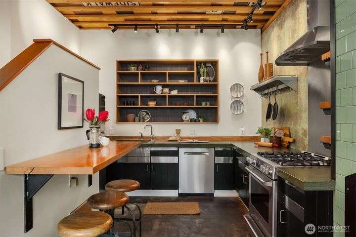 Truly one of a kind and unique! Once a neighborhood grocery, this Central District landmark has been fully reimagined for modern living. Rustic details—reclaimed wood, polished concrete and restored storefront windows blend seamlessly w/SMART features, A/C and updated systems. The chef’s kitchen includes butcher-block counters, pro appliances and open shelving. W/3 bedrooms & 2 ¾ baths, the home’s highlight is the top-floor retreat where NanaWall doors open to sweeping city and Olympic Mountain views. Multiple decks, including a rooftop, extend living outdoors and capture sunsets. Blocks from Capitol Hill and downtown, this home offers the perfect fusion of history, design and vibrant lifestyle. Historic gems like this are hard to find!