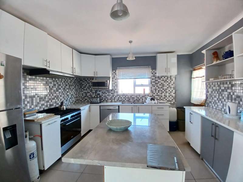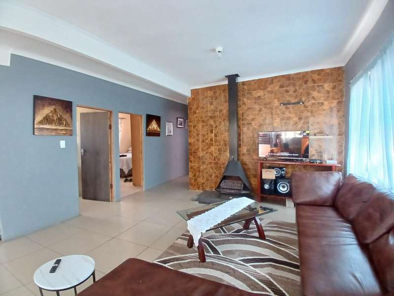 As you enter the property you have a enclosed braai area. Door leading to the inside with the open plan kitchen, dining area and lounge. Lovely fireplace for the winter evenings. Two bedrooms are well sized and the third is extremely spacious. Your main bathroom have a bath, toilet and basin. There are a spacious guest toilet that could accommodate a shower. The main bedroom also have space for an en suite. Additional too this, there are two one bedroom self containing flats. Great income generator. You have a single entrance garage, but space for two cars. Your washing room is also in this area. Solar geyser and stove top. The property is fenced and the plot is a pan handle.