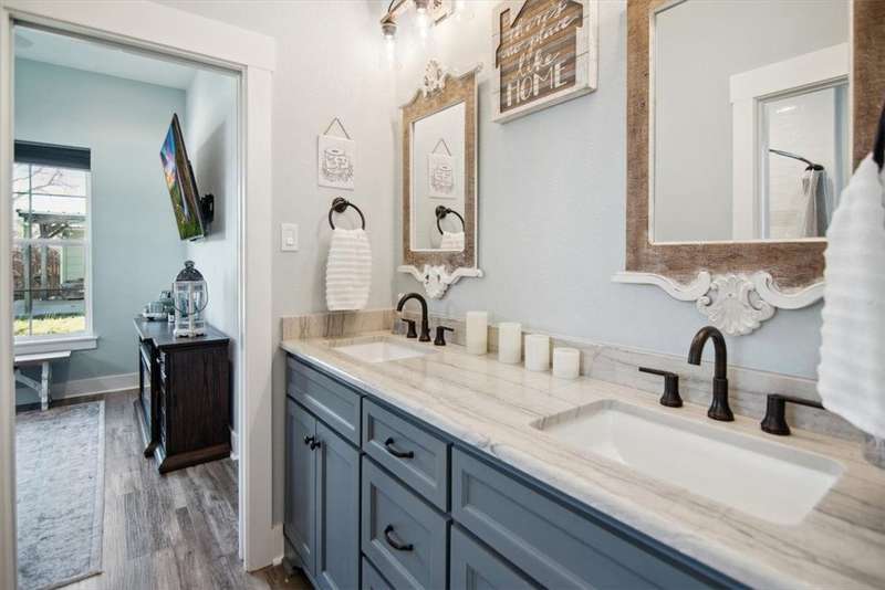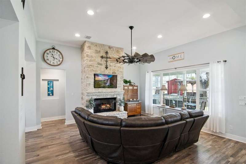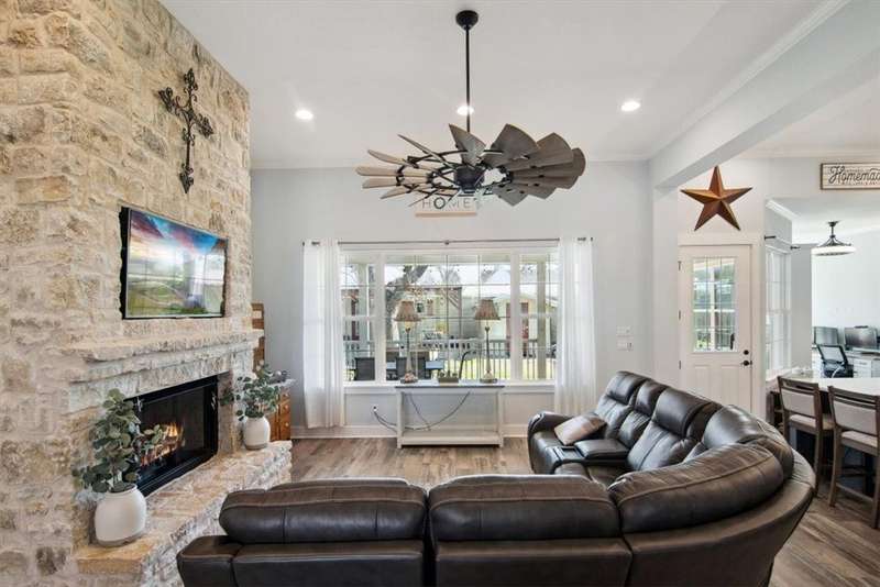 Welcome to this beautifully designed 4-bedroom home, offering an exceptional layout perfect for modern living. The main house features a luxurious master suite, complete with a large walk-in closet and a spacious bathroom that includes both a separate soaking tub and an oversized walk-in shower with a built-in seat for ultimate relaxation. The open-concept of this home, seamlessly blends a spacious kitchen, including a large island with ample counter space and seating for your guests to sit around the kitchen with room to enjoy one another. The windows throughout provide natural sunlight through the kitchen, living and dining room. Special touches they've added like the windmill ceiling fan, large farmhouse sink, and under cabinet/under island lighting make it that much more unique. On the opposite side of the home, another master-sized bedroom ensures privacy and convenience, making it ideal for guests or extended family with its full bath as well and a large window for lots of natural light. Within the same hallway there are two bedrooms that share a full sized jack and jill bathroom. If you're one that enjoys the outdoors, right out the back door is a covered sitting area with ceiling fans, lighting and lots of space for entertaining or just relaxing under the large trees. The backyard is further enhanced by a spacious Mother-In-Law suite, offering 2 additional bedrooms, a full kitchen, an open dining area, and a bathroom. The suite also features its own large covered porch, with space to relax. There is a paved driveway, parking area to the right of the home for ease of access thru the garage for the main home or through the gate for the suite in the back of the home. This home provides every detail, thoughtfully planned and built to perfection, where luxury meets comfort and all in the perfect location in the old town district of Lorena.