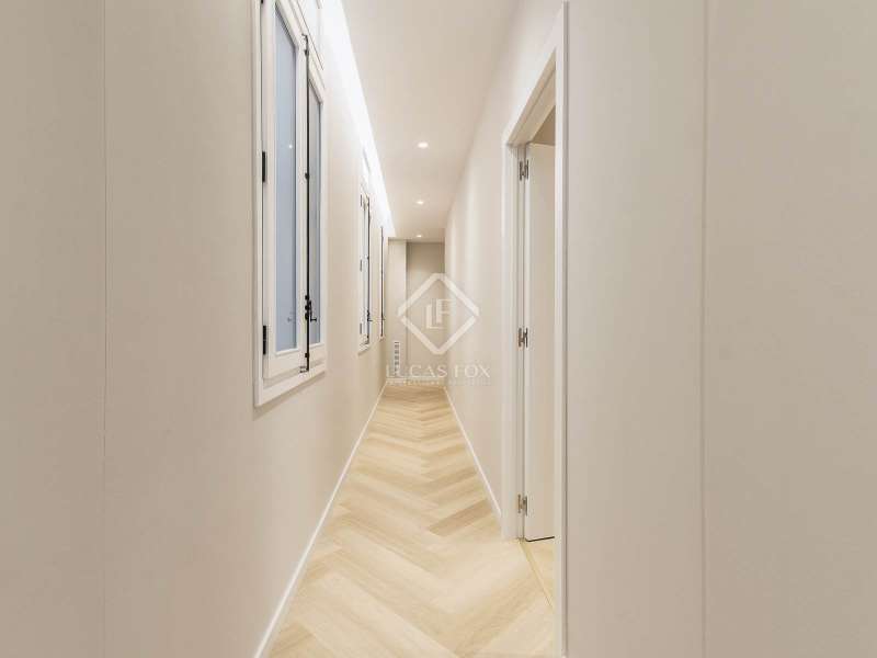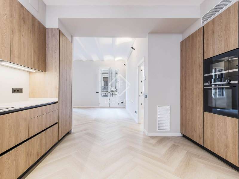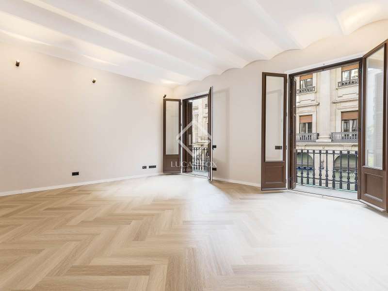 Lucas Fox presents an exclusive refurbished property located on a magnificent main street on the recently renovated Via Layetana, one of the most emblematic arteries of Barcelona. This street is destined to become a landmark in the Old City, as it has been transformed thanks to the reduction of traffic, the widening of sidewalks and the addition of green areas. In addition, it connects two of the most historic and charming neighborhoods in the city: the Born and the Gothic Quarter. For this reason, it is surrounded by iconic monuments such as the Barcelona Cathedral, the Palau de la Música and the city hall. The building, built in 1936, has an elegant lobby , concierge service, elevator and a large communal terrace, ideal for enjoying moments outdoors. In this privileged environment we have this refurbished property with high quality finishes, designed to offer modern, bright and functional spaces that combine style and comfort. The property has three bedrooms and two complete bathrooms, one of them located inside the master bedroom. The living-dining room integrates perfectly with an open kitchen, creating an open-plan space of almost 50 m² that opens onto two large balconies with exceptional views of the Barcelona Cathedral. The property features herringbone laminate flooring, air conditioning via aerothermics and a kitchen equipped with Siemens appliances . All of this creates a sophisticated and practical environment for urban living. Please contact us for more information or to arrange a viewing of this exclusive property in the heart of Barcelona.
