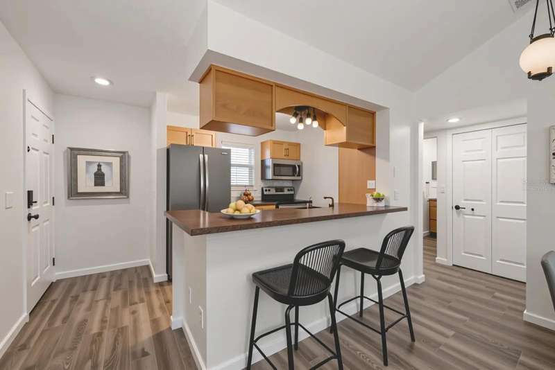 Under contract-accepting backup offers. One or more photo(s) has been virtually staged. PRICE IMPROVEMENT! Welcome to effortless Florida living in this beautifully updated 2-bedroom, 2-bath condo, ideally located in the highly sought-after Countryside area of Clearwater. Nestled on the top floor of a quiet building, this third-floor unit features vaulted ceilings that enhance the spacious, airy feel throughout. Step inside to discover a warm and welcoming interior where wood-look tile floors flow through the main living spaces, offering both style and durability. The kitchen was fully updated with new appliances in 2016, making it perfect for everyday cooking or entertaining guests. Just beyond, the open-concept living and dining area leads to a screened-in back porch—a peaceful retreat for enjoying your morning coffee or unwinding after a long day. Both bedrooms are generously sized and feature brand new carpet installed in 2025 for a soft, fresh feel. The interior was completely repainted in 2025, including the newly textured and painted ceilings, giving the entire unit a crisp, modern finish. Additional major updates include: New HVAC system in 2017 New air handler and ductwork in 2025 New shower plumbing in both bathrooms (2024) New washer and dryer installed in 2022 This condo is move-in ready and meticulously maintained—offering true peace of mind. Located just minutes from top-rated schools, shopping centers, dining, golf courses, and Clearwater’s world-famous beaches, this home offers the perfect blend of comfort, convenience, and Florida charm.