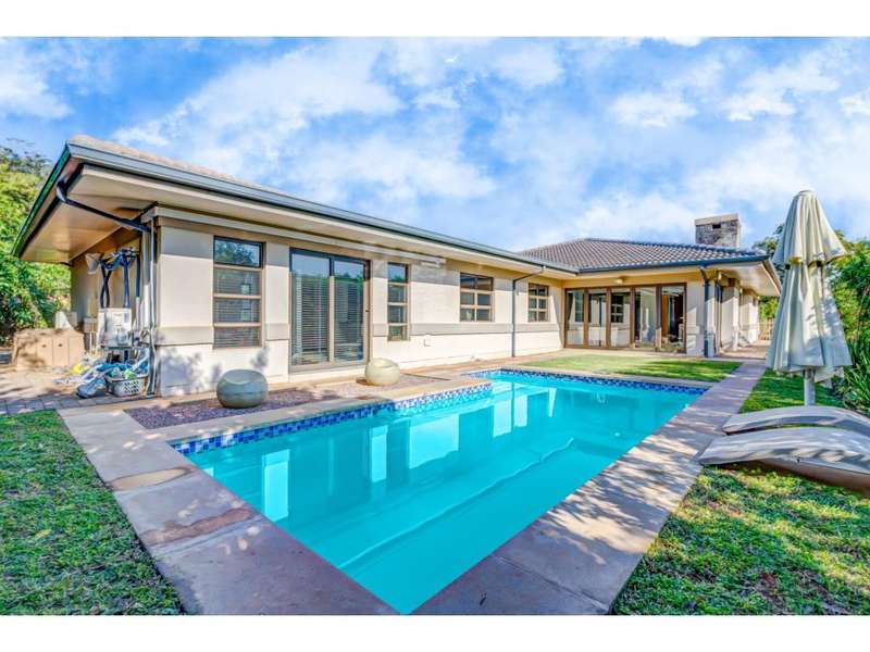 This north facing 4 bedroom home in Brettenwood has great value added features including a study and staff accommodation The front door leads onto a spacious entrance hall with the study and direct garage access adjacent The reception area has a user friendly layout, with a modern kitchen overlooking the lounge and dining room Lounge with high quality built-in cabinetry, and sliding door access onto an enclosed patio with built in braai, a spacious and versatile entertainment area for any occassion Accommodation consists of 4 bedrooms and 4 bathrooms The spacious main bedroom has direct pool-side access, large en-suite bathroom with bath and shower, as well as an oversize walk-in closet The previous staff accommodation has been modified for additional walk-in closet space, staff bathroom and separate access still in place to be easily switched back for staff accommodation if required There's a second en-suite family bedroom, as well as a family bathroom with bath and shower Property is complete by double garage, air conditioning, wrap around garden and a courtyard Brettenwood Estate is a secure estate community central to fast developing region of the KZN North Coast World-class amenities include clubhouse with restaurant, kids pool & slides, gym, heated pool, lap pool, junglegyms, forest board walks, bird hides and more