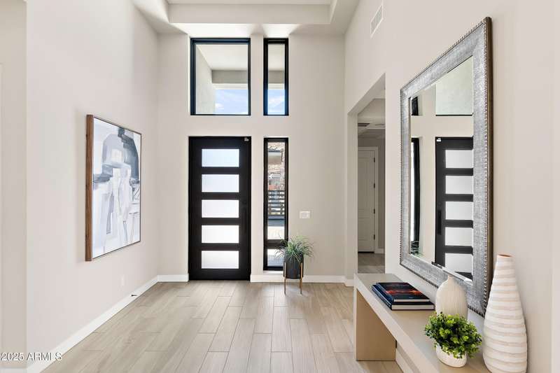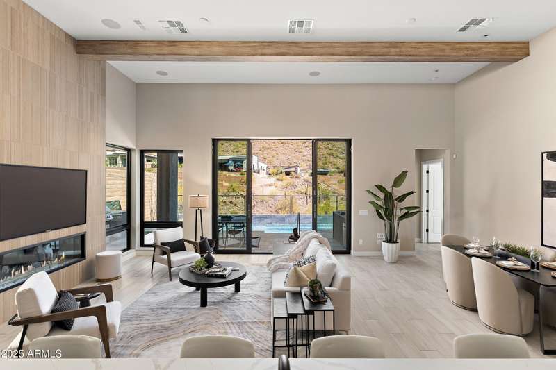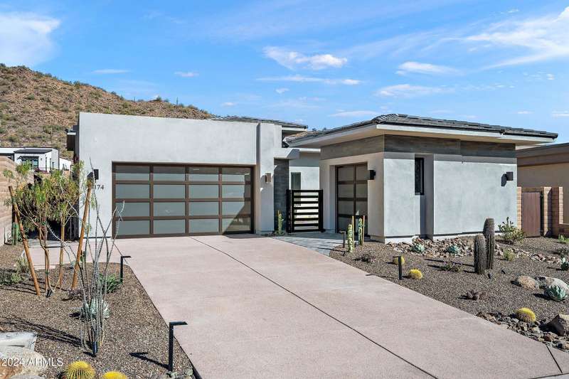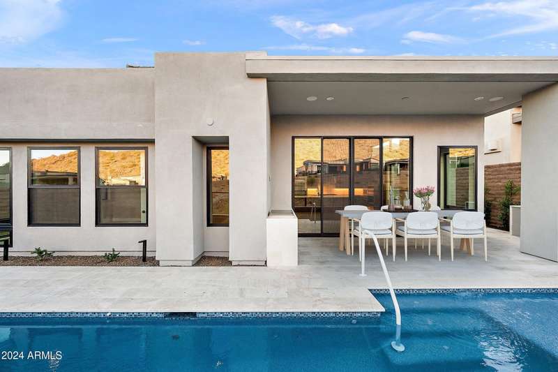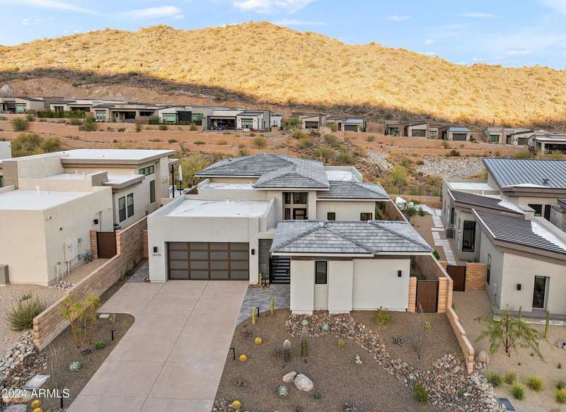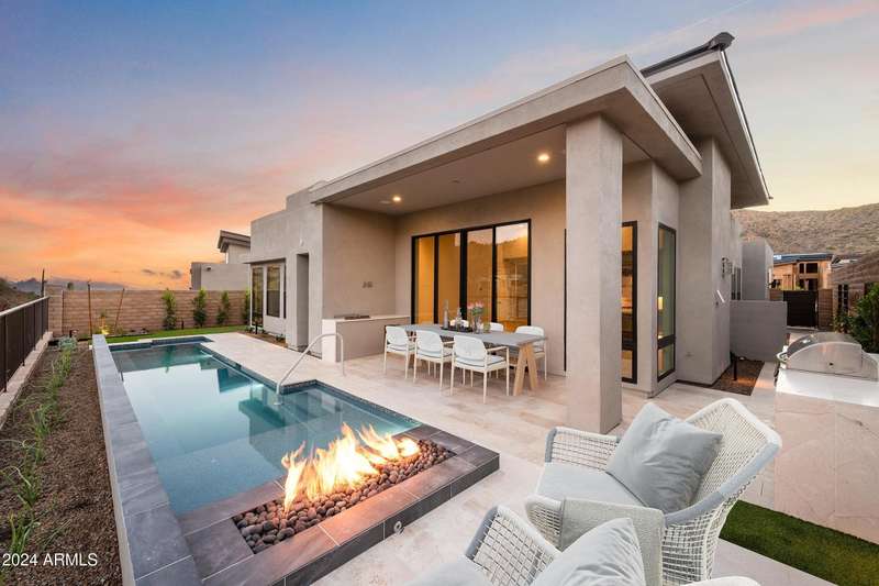 Significant price improvement on this newly completed luxury home in the desirable gated community of Adero Canyon. Located on a premium view lot with breathtaking canyon & mountain views, this meticulously crafted Meyer Contemporary model offers a perfect blend of sophistication, style, & modern living. Enjoy the convenience of single level living, offering seamless flow & easy accessibility, plus the abundance of upgrades in this home. The open concept living area is enhanced by high ceilings & expansive windows, filling the home with an abundance of natural light. The home overlooks a serene canyon, surrounded by unobstructed mountain views, providing a sense of privacy & tranquility. Every detail of this home has been thoughtfully curated, from the elegant neutral tones to the high-end materials that grace every room. The kitchen is a chef's delight featuring a large island w/quartzite countertop, upgraded cabinetry, pantry, Subzero refrigerator, Wolf cooktop, Wolf ovens and Subzero beverage refrigerator. The professionally designed desert landscape includes a striking linear pool, a built-in BBQ and a cozy firepit, perfect for relaxation and gatherings. A beautiful fully landscaped front courtyard with water feature creates a welcoming entry. The property's thoughtfully planned landscaping showcases a variety of premium desert plants offering vibrant colors year-round. This exceptional home is perfect for those seeking a private oasis with the convenience of modern living and the beauty of surrounding mountain views and desert serenity. Conveniently located near downtown Fountain Hills and Scottsdale with easy access to world-class golf courses, shopping, dining, and entertainment. Residents have access to nearby hiking trails and the Adero Resort and Spa, where club memberships offer access to fitness classes, a state-of-the-art gym, tennis, pickleball, plus both resort-style and lap pools at competitive rates.