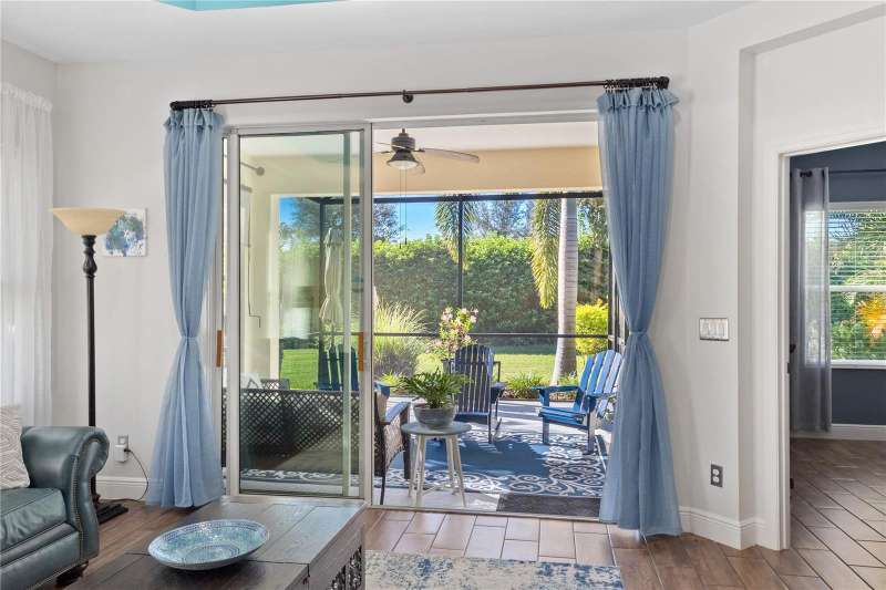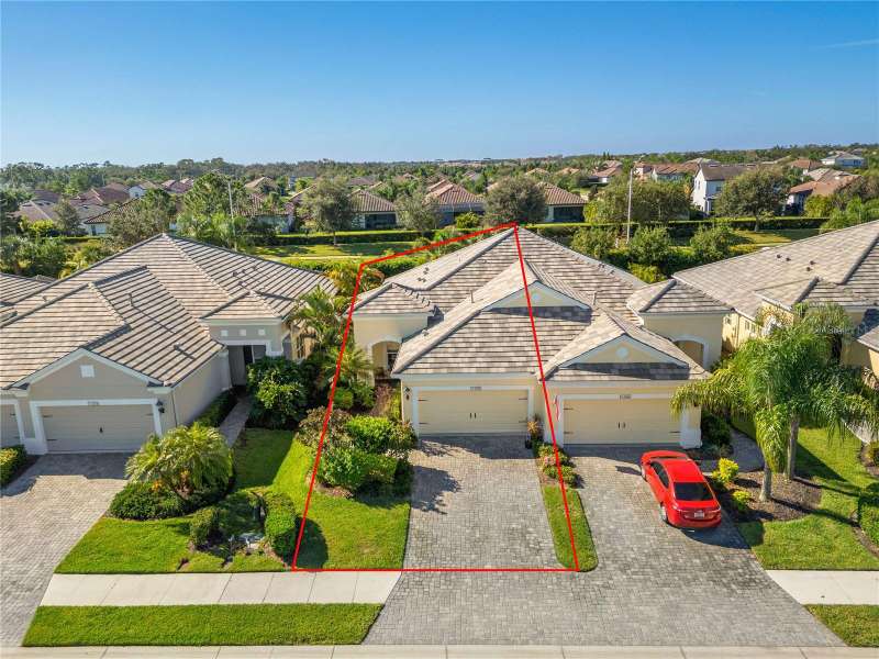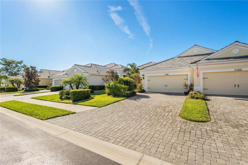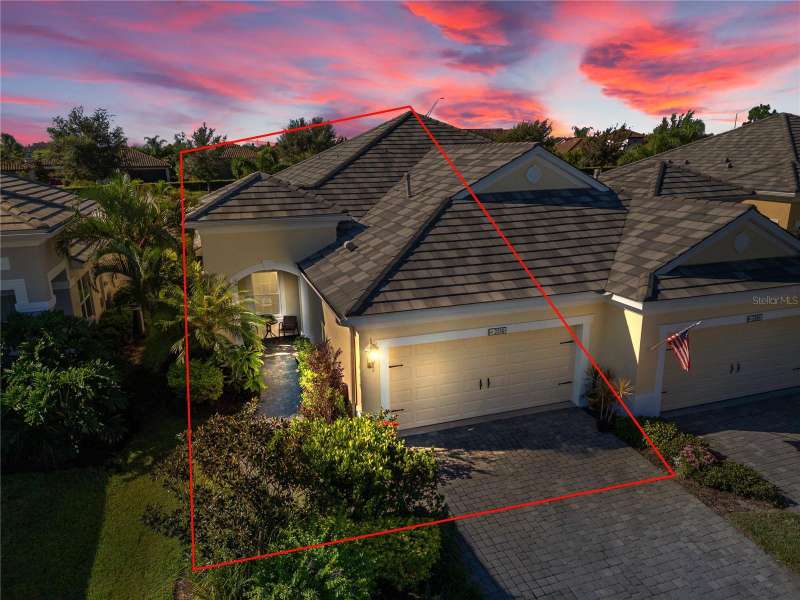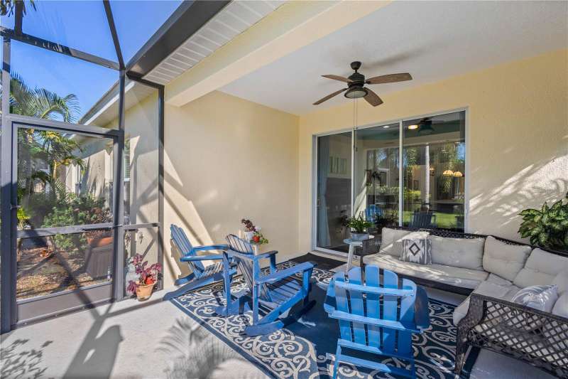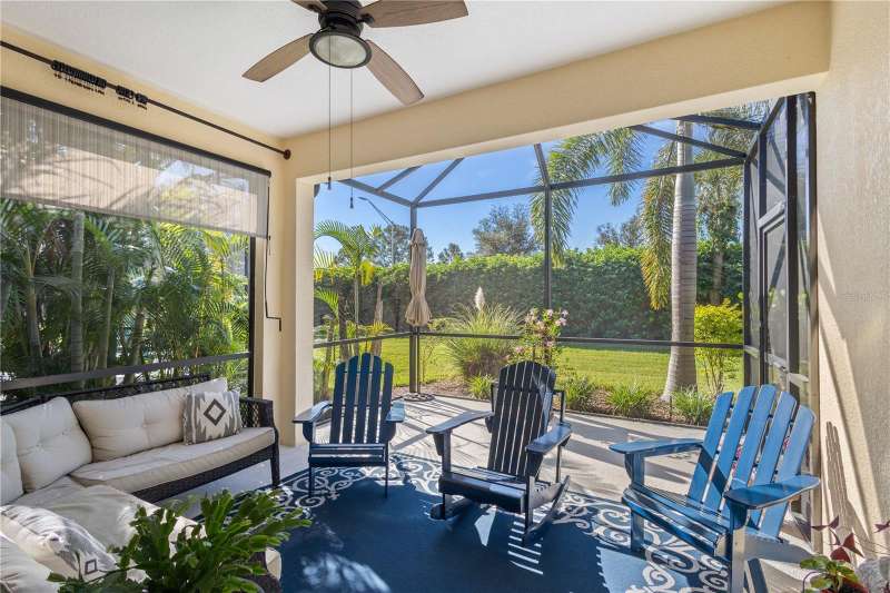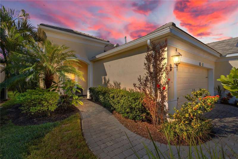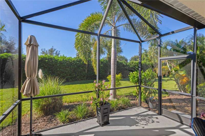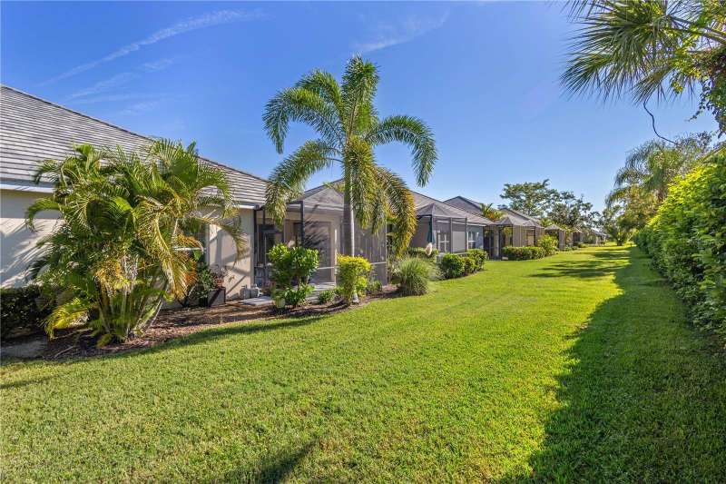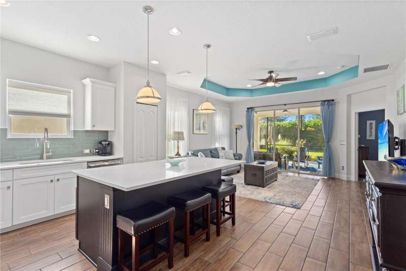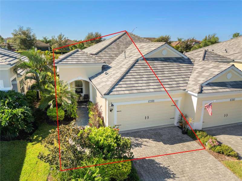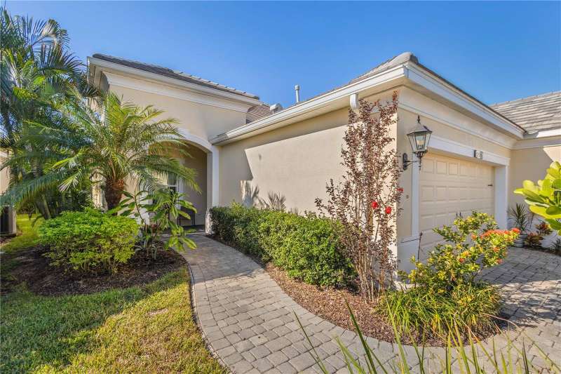 Under contract-accepting backup offers. Nestled in the gated community of Eagle Trace, this 2 bedroom, 2 bath villa invites you in with its bright and seamless design. A screened-in entryway with a glass front door welcomes you inside, where you’re greeted by a versatile area that can serve as a formal dining room, home office or den. The kitchen then takes center stage with its large island offering plenty of storage, gleaming quartz countertops, a stylish glass tile backsplash, and a gas range that makes cooking a joy. From here, the layout flows effortlessly into the living area, where natural light pours in through the windows and highlights the wood-look flooring that extends throughout the home, creating a warm and cohesive feel with a seamless connection to the outdoors. Step outside to the extended lanai, where you’ll enjoy beautifully landscaped surroundings and plenty of room to relax or entertain. The split floor plan provides privacy with the primary suite tucked away as a true retreat, complete with a modern walk-in shower. Towards the front of the home, a second bedroom and full bath offer flexibility for guests or additional flex space. With its thoughtful updates, welcoming layout, and low-maintenance lifestyle, this is the perfect place to call home, whether for everyday living or a seasonal escape. Eagle Trace offers resort-style amenities including a community pool, spa, tennis courts, dog park, and gathering spaces, all in a prime location near shopping, dining, and everything Lakewood Ranch has to offer. And, no CDD fees!