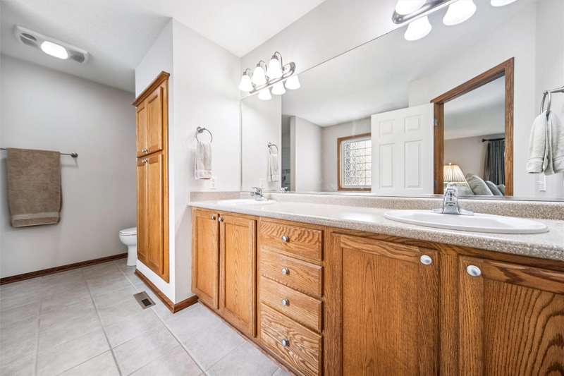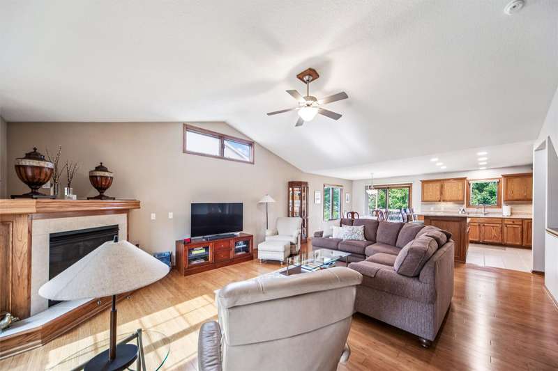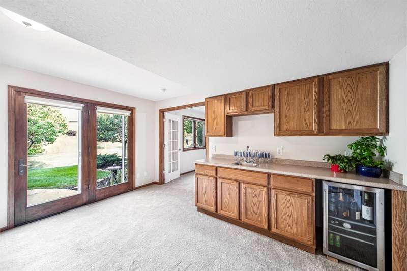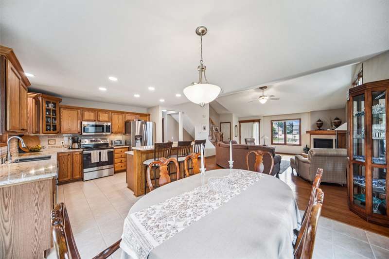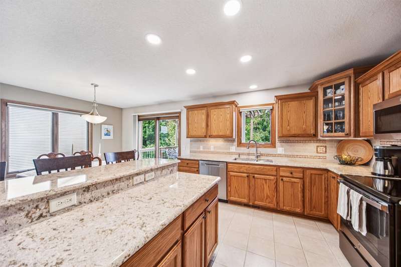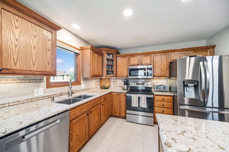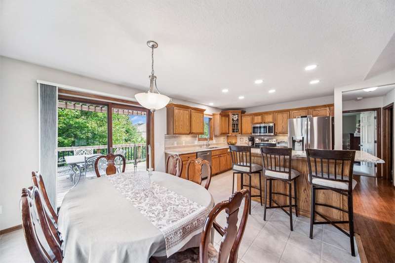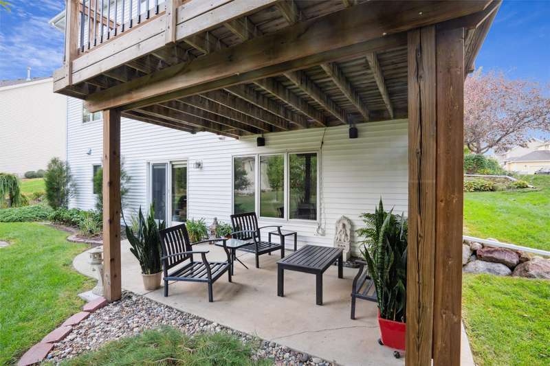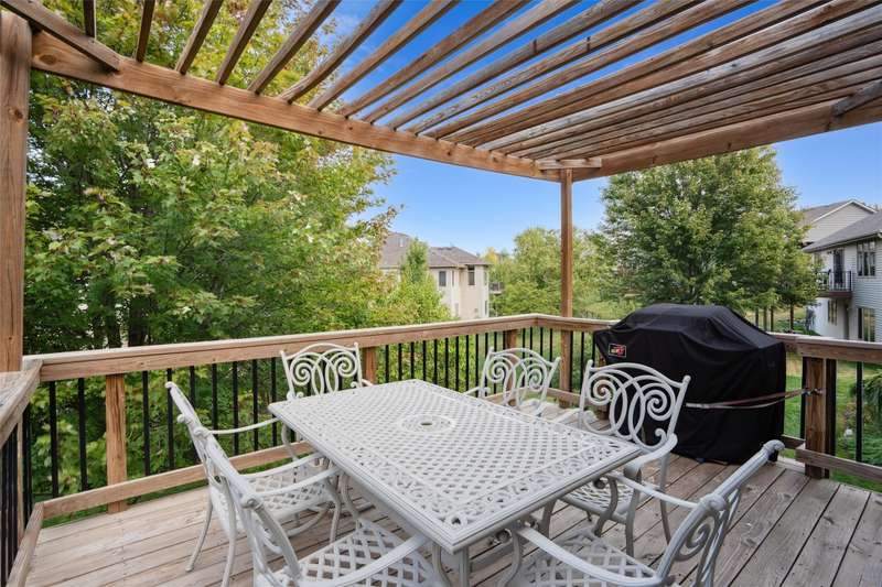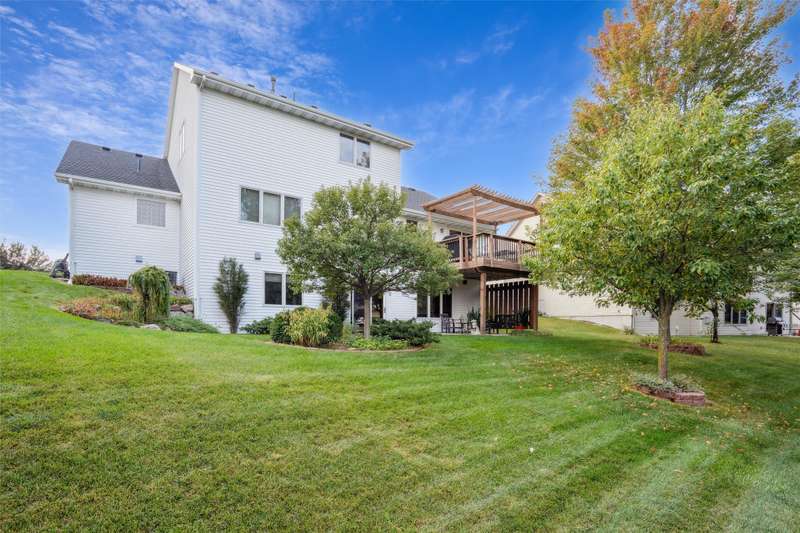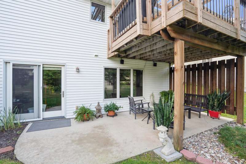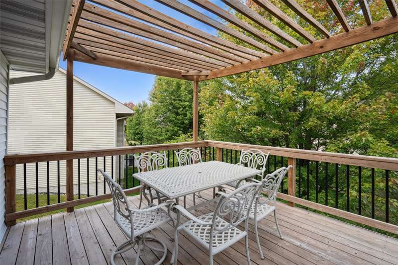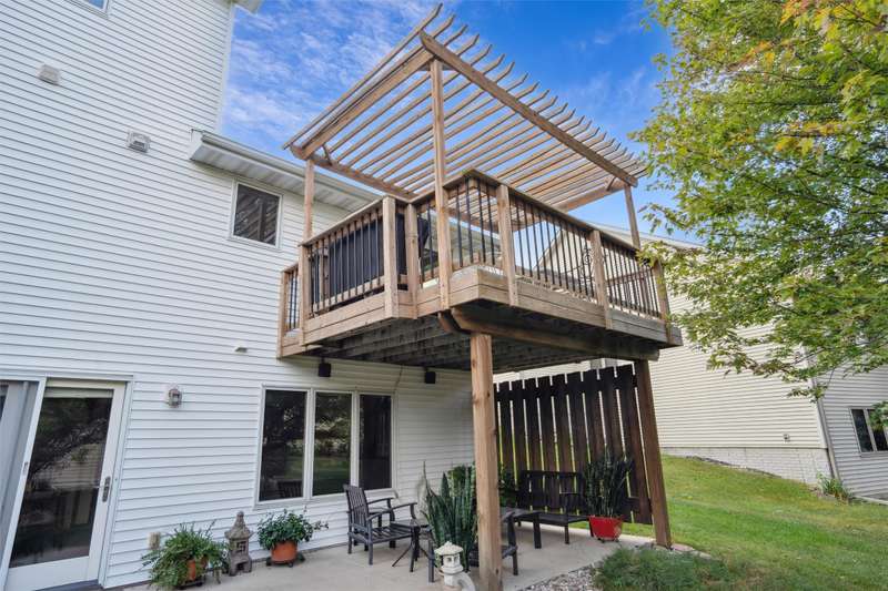 This home screams LOCATION! Beautiful, quiet, neighborhood setting. Main floor living features open concept with vaulted ceilings; off the kitchen (granite tops and newer appliances) and dining area you will find a deck with pergola for shade; enter the laundry/mudroom from the 3 car garage; half-bath for guests; large master bedroom, complete with private master ensuite and tile shower. Upstairs you will find 2 large bedrooms with walk-in closets and a full bath. Walk-out lower level has 4th and 5th bedroom, full bath, family room/rec room with wet bar. 5th bedroom is currently set up as a private home office. Storage galore! Home is much larger than it looks from the front elevation. Must see to appreciate the thoughtfully laid out floor plan.