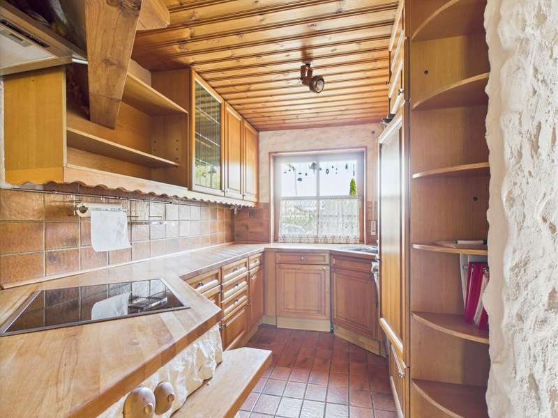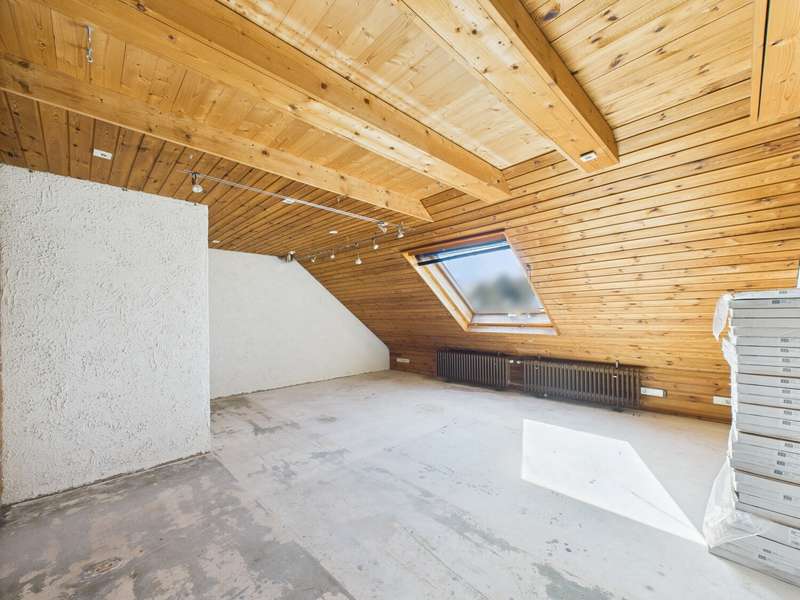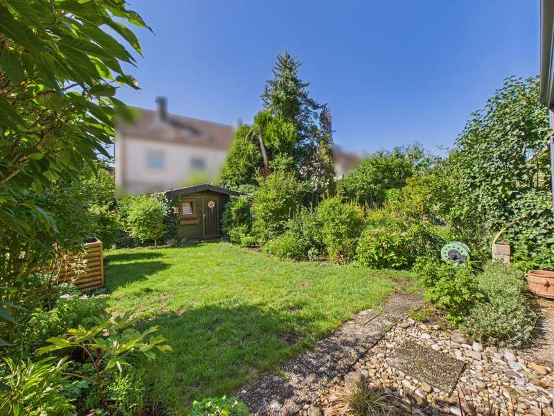 This charming mid-terrace house from 1969 boasts a solid solid construction and a quiet location with very good connections - ideal for families or anyone who wants to live close to the city and in pleasant surroundings at the same time. With a living space of approx. 115 m² on a plot of approx. 159 m², the house offers a well-thought-out room concept and a cozy home for the whole family. The living and dining area is the central meeting point of the house. From here you have direct access to the covered outdoor seating area, which invites you to linger regardless of the weather. The adjoining garden has been lovingly landscaped and offers space for relaxation, playing or hobby gardening. The kitchen is equipped with a practical fitted kitchen and blends harmoniously into the floor plan - perfect for cooking and enjoying meals together. The upper floor houses several well-designed bedrooms that can be used flexibly as parents', children's or study rooms. Bright rooms, functional layouts and pleasant room heights create a homely atmosphere. The bathroom has a functional design, has been completely renovated and has natural light - a solid basis that can be individually upgraded with modern design ideas. The spacious room on the top floor is a highlight. Thanks to the pleasant room height and homely design, it is ideal as a master bedroom, studio, guest or work area - a real plus in terms of living comfort and flexibility. There is a small loft above. Three rooms in the house (children's room and room in the attic or additional children's bathroom - here the water and heating connection has already been laid) are in need of renovation - new floor coverings and fresh design are particularly recommended here. This also gives you the opportunity to design the rooms according to your own ideas and wishes. The house thus offers full potential for individual self-realization. Additional usable space is available in the basement. The full basement area offers space for storage, washing, hobbies or a small workshop. The building services are also located here with gas heating (systems from 1992/2009, hot water boiler from 2015). The property includes a garage in the garage courtyard, approx. 150 m from the house, which offers secure parking space and additional storage options. If you would like further information or would like to arrange a viewing, please do not hesitate to contact us.