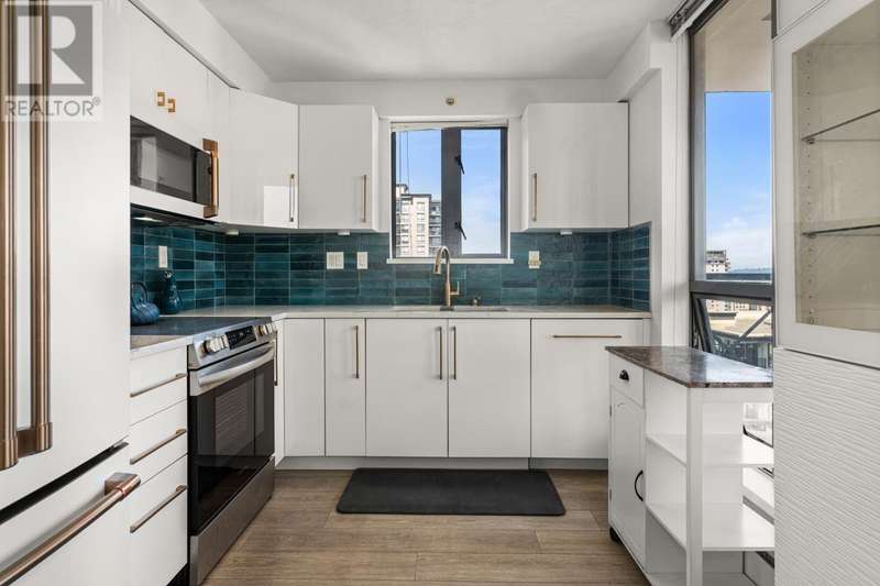 NEW PRICE! VACATED AND FRESHLY PAINTED: 2021 RENOVATED ($55K) 2 BEDROOM PLUS DEN/3RD BR | WRAP AROUND WATER + MOUNTAIN VIEWS | MOST DESIRABLE FLOOR PLAN + HIGH FLOOR | WALK TO SKYTRAIN, QUAY, RESTAURANTS, GROCERIES, THEATRE - Stunning views, floor-to-ceiling windows; south facing sunshine await in this renovated 2 BR + DEN/3RD BR corner home with the best floor plan in the building. Wide plank flooring, brushed gold fixtures, gloss white cabinets, stainless steel/matching white appliances, barn sink, & custom Italian tile backsplash. Breathtaking views of the Fraser River enjoyed year-round from inside or on your spacious balcony that extends your living area in the warmer months. Primary bedroom has a river-view and renovated ensuite. Additional BR and den/BR share a stylish 3-piece bath and mountain views. Steps to New West Skytrain station, Westminster Quay, shopping/groceries, restaurants, & convenience right at your door. Parking, storage, gym, & INSPECTION REPORT INCLUDED for peace of mind as well. (id:58403)