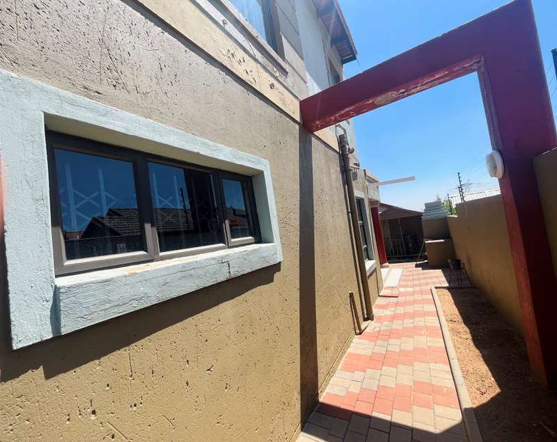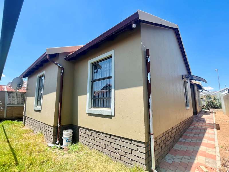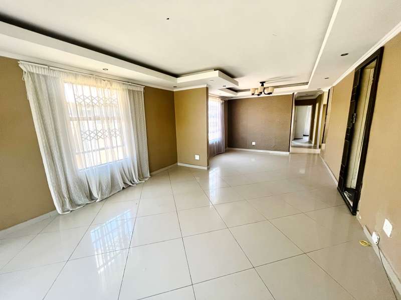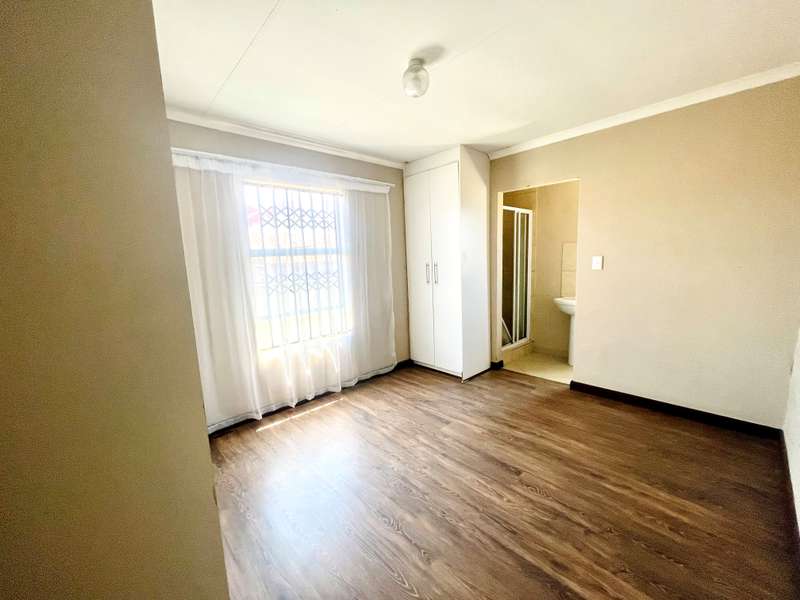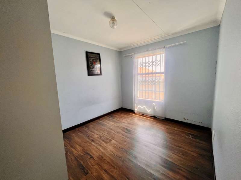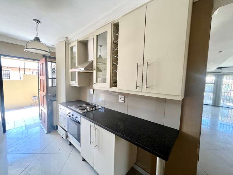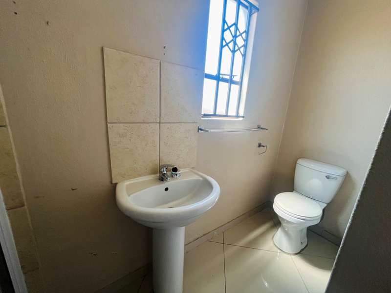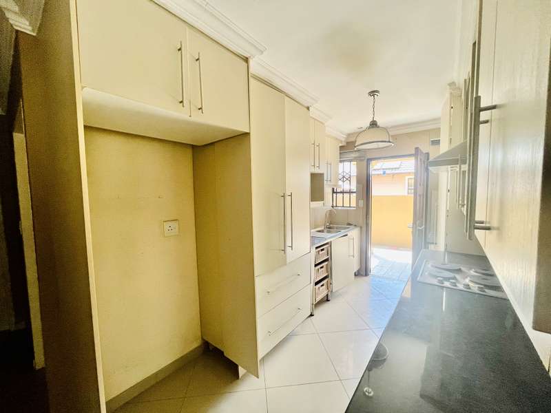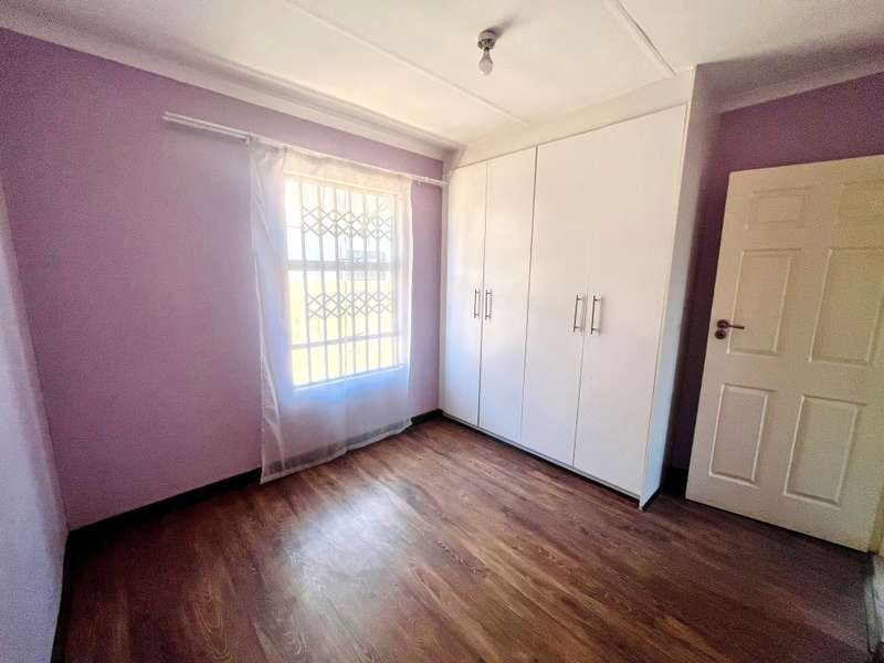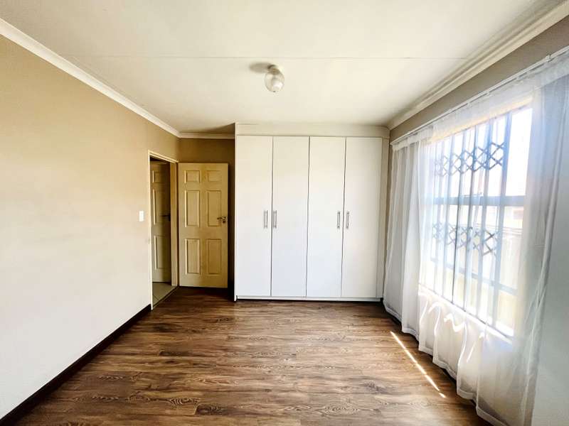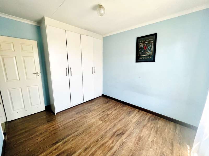 This freehold house in a gated community is located along R55 and is close to N14 and N1 highways. The best schools and shopping centres, as well as Mall of Africa are close by. Access to the property is through a boom gate guarded by security guards. The kitchen is fitted with modern built-in cupboards and has 4 plates electric stove. The cupboards can fit a double door fridge. There’s an extra room on the ground floor that can be used as an office. On the ground floor are 2 bedrooms with built-in cupboards, sharing a separate bathroom with a bath tub. The other room also has built-in cupboards and an ensuite bathroom with a shower and a toilet. The main bedroom is upstairs, with an ensuite bathroom. The lounge and dining rooms are open plan, and spacious enough to accommodate big furniture. The washing machine connection is in the lock-up garage; where you can park 2 cars. There built-in braai on the side of the kitchen next to the patio. Electricity is prepaid. Make a viewing appointment today.