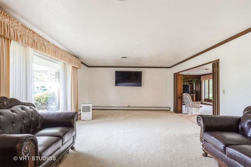 Welcome to this spacious 4-bedroom, 2.5-bath ranch home, perfectly situated on over half an acre in desirable Sleepy Hollow. This solid, all-brick, single-level residence has endless possibilities and offers comfortable and convenient living with timeless charm. Inside, you'll find a bright and open floor plan featuring a huge living room with a wall of windows that flood the space with natural light. The kitchen offers ample cabinetry, plenty of counter space, a large eating area and an adjacent dining area-ideal for both everyday living and easy entertaining. The oversized family/dining room combo offers a warm and inviting atmosphere with its cozy fireplace that features a stunning stone surround mantle. Expansive sliding glass doors lead directly to the backyard, seamlessly blending indoor and outdoor living. All four bedrooms are generously sized, offering flexibility for family, guests or a home office. Step outside and enjoy the beautifully landscaped backyard complete with a patio which is perfect for entertaining, or simply relaxing in your own private retreat. Additional highlights include a three-car garage that provides exceptional storage and convenience. Located just minutes from shopping, dining, parks, and top local amenities, this home offers space, style, and an unbeatable location. Don't miss this opportunity to own this truly exceptional home. Schedule your private tour today!