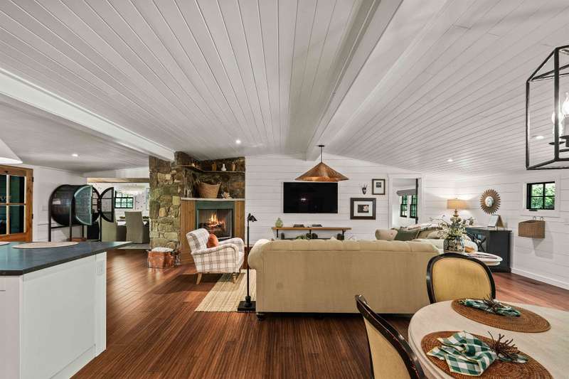 This beautifully renovated idyllic cottage is the perfect blend of luxury and charm. Thoughtfully updated from top to bottom, no detail was overlooked in the transformation of this stunning home. Upgrades include a roof replacement, kitchen remodel, bathroom remodels, new flooring, HVAC, plumbing, paneling, windows, doors, tankless water heater, landscaping, fire pit and the addition of an expansive and enchanting covered porch?ideal for outdoor entertaining around the chiminea or relaxing while overlooking the lush, private backyard. Step inside to discover a warm and inviting open-concept living space featuring a striking stone fireplace and shiplap ceilings that add character and comfort. The stylish and cozy dining room is perfect for hosting family and friends. The serene and private primary suite boasts an elegantly tiled bath and a spacious walk-in closet. A charming bunk bedroom with an ensuite bath and desk niche provides a perfect space for guests or work-from-home needs, while a third private guest suite offers its own beautifully appointed ensuite bath. Unwind in the outdoor Jacuzzi under the stars or sip coffee on the welcoming front porch while enjoying the peaceful sounds of nature. Set on a generous lot, there's plenty of space for pets, a garden, or simply enjoying the natural beauty that surrounds you. One level living, timeless decor, luxurious furniture, linens and finishes, and magazine-worthy design make this home truly turnkey. Located just minutes from downtown Highlands?yet outside town limits for added privacy?this property offers a rare combination of convenience and seclusion. With a proven 5-star rental history, it's an excellent choice for a primary residence, vacation home, or investment property. All that's left to do is move in and savor the seasons in this exceptional Highlands retreat. Sold fully furnished with just a few exceptions. Come fall in love with this perfect Highlands cottage!