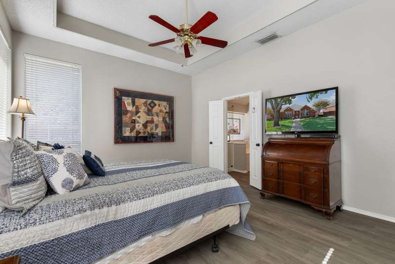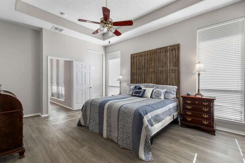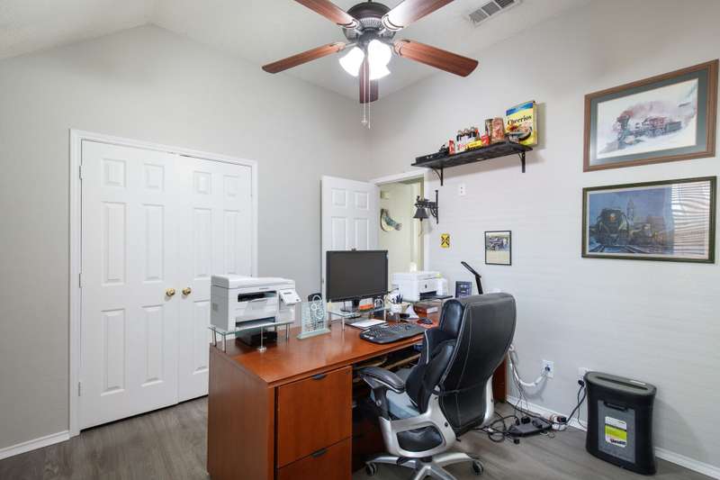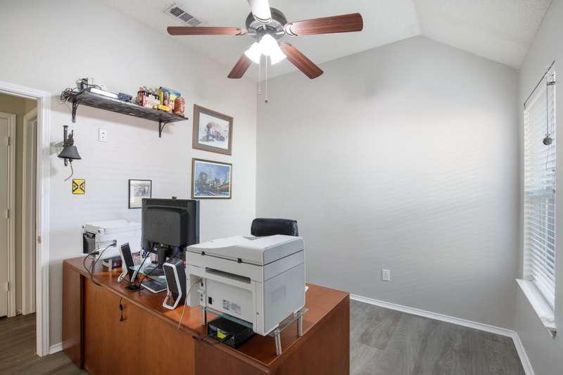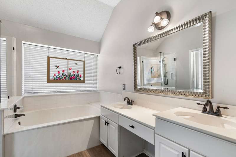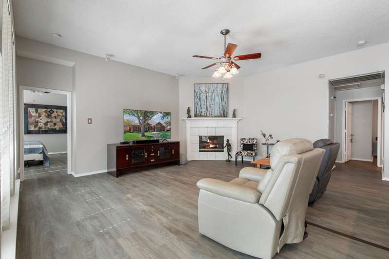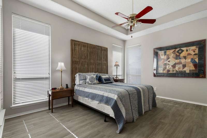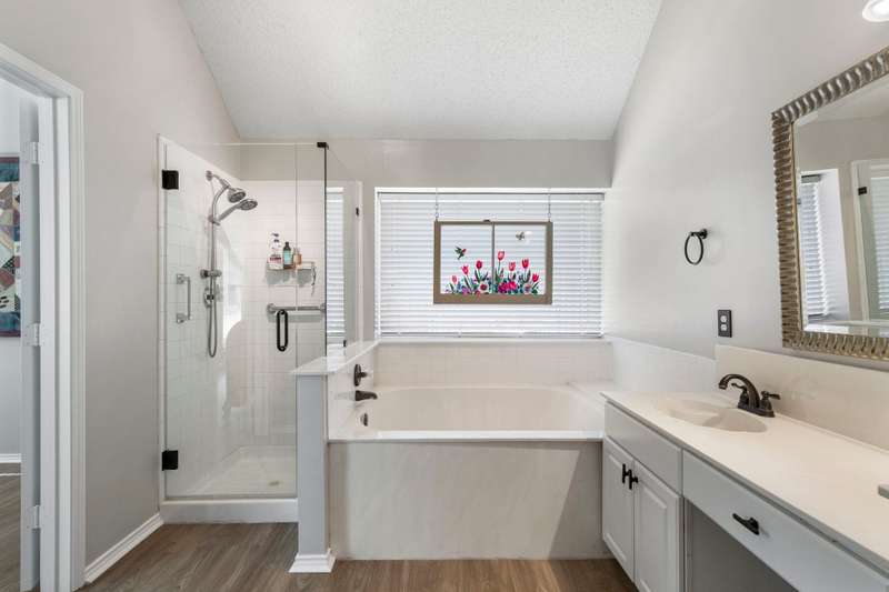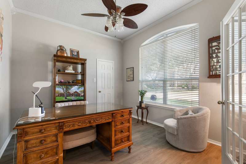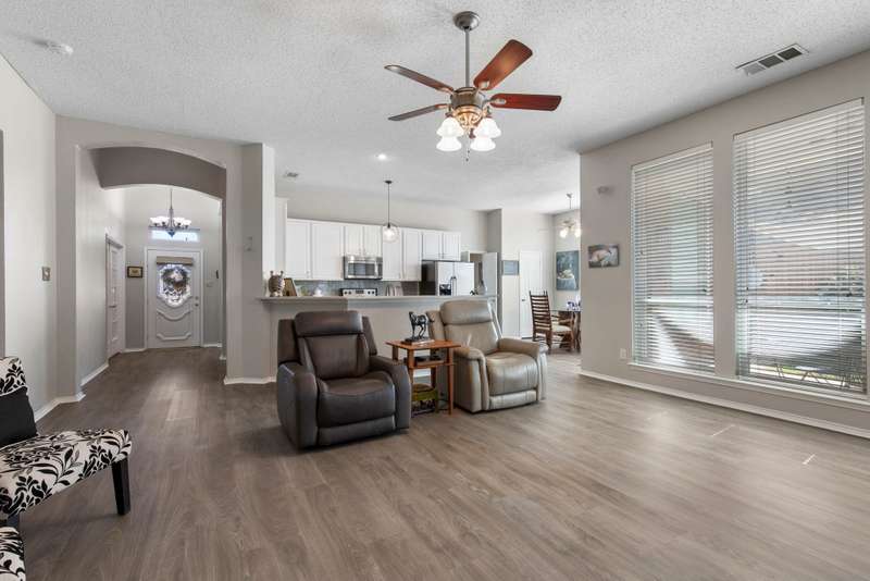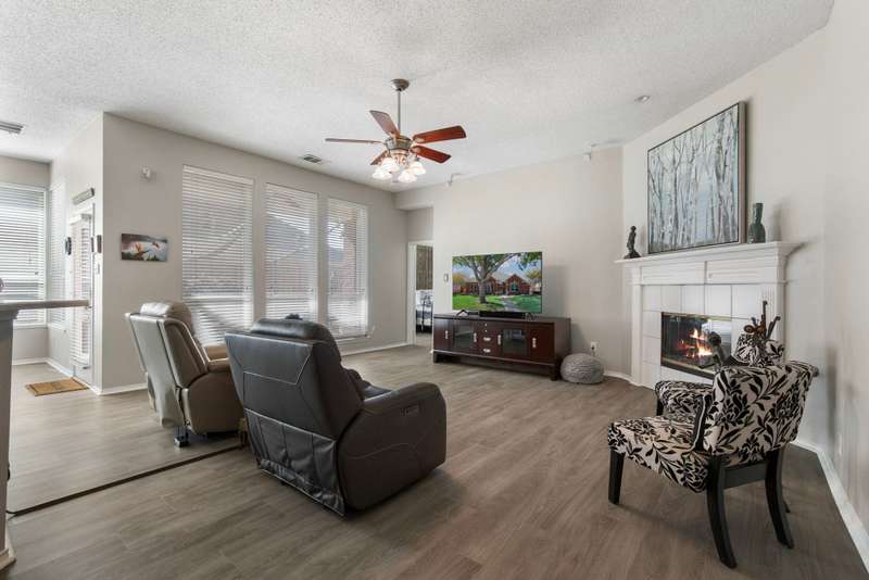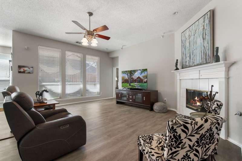 A FRISCO GEM! One owner one story in a highly desirable neighborhood in the heart of Frisco,Tx! Immaculately maintained and kept in tip top condition thru the years! Priced to sell and REALLY IS... MOVE IN READY! Sellers relocating. Charming drive up appeal, and lush landscaping. Rare find with 4 Bedrooms or 3rd Bedroom can serve as an OFFICE...TWO LARGE LIVING AREAS perfect for entertaining or privacy. Very livable floor plan with split bedrooms, open kitchen and living area with fireplace, and Primary bedroom sits at the back of the home perfect for relaxing, and privacy. ALL NEW ANDERSON WINDOWS, ROOF ONLY 2 YEARS OLD, LUXURY VINYL WOOD-TYPE FLOORING IN EVERY ROOM! Beautiful lighting...and lots of windows make this home light and bright. Kitchen update with fresh painted cabinets, quartz counter tops, lightly used appliances, and designer neutral backsplash. The kitchen has plenty of room for eating and entertaining and opens to the very open family room with gas fireplace with glass door. Master bathroom updated with frameless glass shower, garden tub, double vanities, and quartz countertops, and new lighting and fixtures. FRESH INTERIOR AND EXTERIOR PAINT. This home has it all!