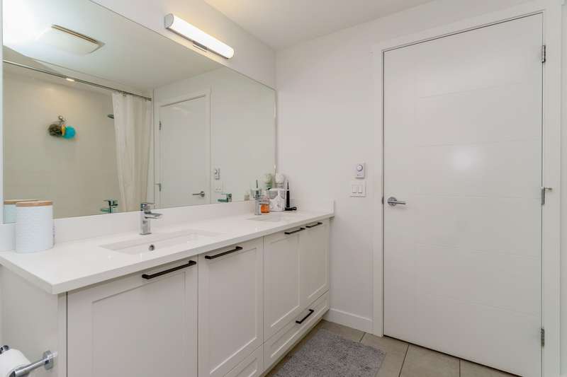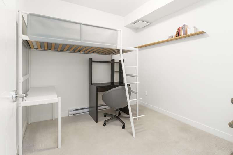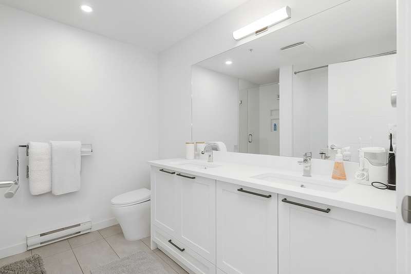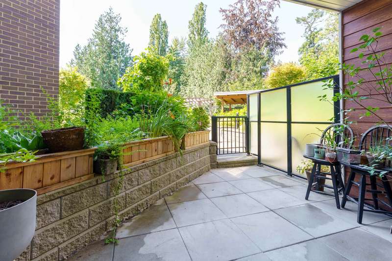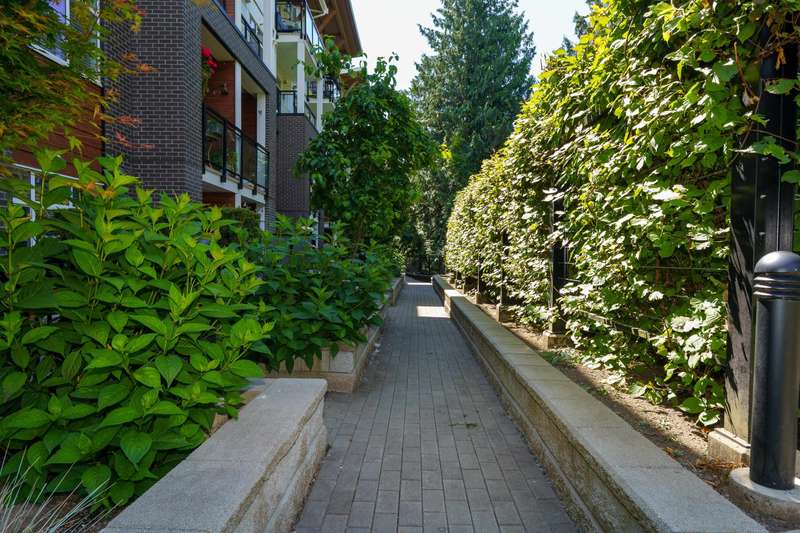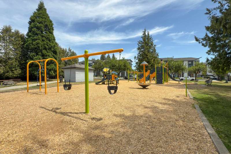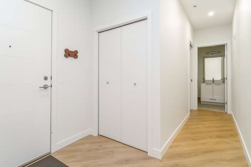 With over 1200sqft of living space this bright and spacious 3 bed ground floor unit feels like a home! Enjoy the abundance of natural light, gourmet kitchen with quartz counter tops & high end appliances, a big in suite storage room, plus a spacious primary bedroom with walk-in closet & a 5 piece ensuite. A large sliding door opens up to your own private patio leading out to the quiet & secure community courtyard (backing onto protected green space) with fire pit, comfy chairs & tables & a children's play area. Within walking distance to Brydon Park, transit and the new future SkyTrain! The unit comes with 2 parking stalls and bike lockers are available. Amenities include a gym, guest suite, EV charging, and dog wash station. Pet friendly complex, 2 allowed. This one is INCREDIBLE VALUE.