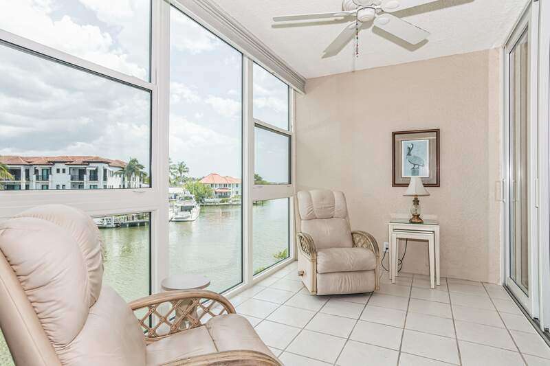 Waterfront 2 bedroom condo plus covered parking in the heart of Old Naples! Sundrenched lanai is perfect for watching the boats all day and enjoying the lights of Naples by night! Spacious living room plus beautiful white kitchen with custom pantry. Large primary bedroom with walk-in closet and great water views. Updated bath with walk-in shower. Impact glass, newer AC (2019) and HW (2021). BeauMer residents enjoy a large heated pool, spa, new grills plus ample guest parking. This is a rare opportunity to buy a waterfront 2 bedroom in coveted C Building. Walking distance to 5th Avenue, Bayfront and Tin City, this beautiful condo is being sold furnished.