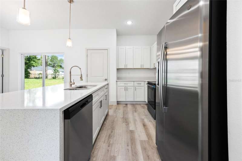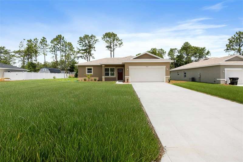 HOME IS COMPLETE AND READY FOR IMMEDIATE MOVE-IN!! Buyer to receive new Blink door and 6 outdoor camera bundle valued up to $500. Seller offering $5,000 for buyer closing costs. Stunning, brand-new construction, spacious 4- bedroom, 2.5-bath home sitting on an oversized lot, offering an open-concept designed with modern living in mind. Enjoy your mornings or unwind in the afternoons on the covered lanai, overlooking a generously sized backyard for outdoor entertaining or even adding a pool. Inside, you'll find elegant finishes, including sleek quartz countertops in the kitchen and bathrooms, beautifully tiled bath and shower areas, and durable hard flooring throughout and no carpet to maintain! All stainless steel appliances are INCLUDED. Don't miss the opportunity to own this stylish and low-maintenance home in a growing community. Whether you’re a first-time buyer, downsizing, or looking for a Florida retreat, this home could be the one! Located in peaceful Citrus Springs with easy access to shopping, nature trails, and the Gulf!