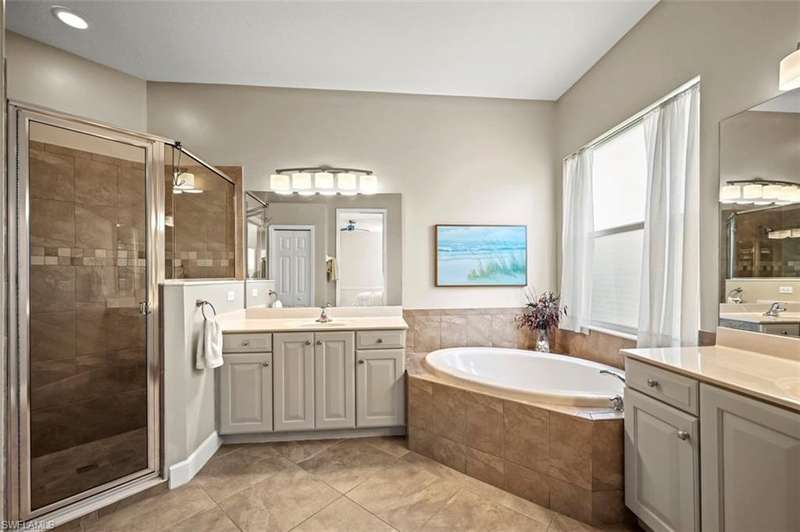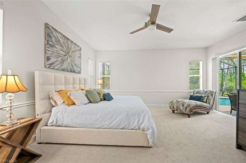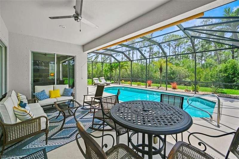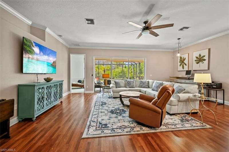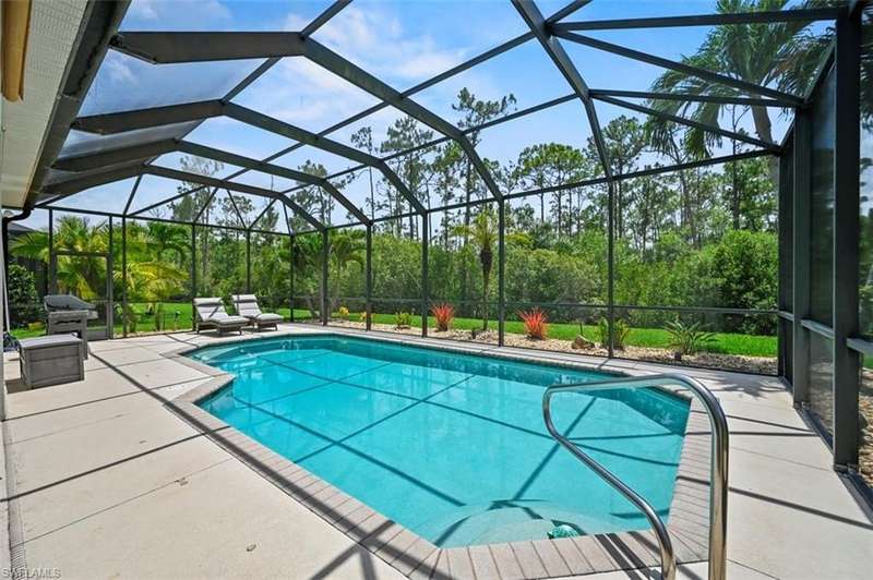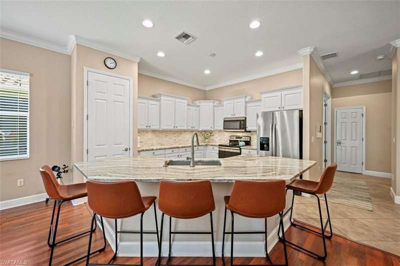 Remodeled Kitchen, Pool & Spa, Preserve Views – 4 Bedrooms in Bella Terra Tucked into one of Estero’s most beloved tree-lined neighborhoods, this move-in-ready home offers 4 bedrooms, 2 baths, a 2-car garage, and an open layout perfect for entertaining. The completely remodeled chef’s kitchen is the showpiece of the home, featuring sleek white cabinetry, granite countertops, a stylish backsplash, stainless steel appliances, and a large one-level island that flows seamlessly into the great room and out to the lanai. The spacious primary suite is a true retreat with a seating area, lanai access, two large closets, and an en-suite bath with dual vanities, soaking tub, and walk-in shower. Guest bedrooms are privately located — two sharing a full bath and a flexible fourth bedroom with French doors and walk-in closet that makes an ideal home office. Step outside to your own private oasis: a screened lanai with pool, spa, and stunning western preserve views, perfect for year-round sunsets. The oversized lanai provides privacy and plenty of space for outdoor living. Bella Terra spans 999 acres with 400 acres of conservation preserves and 100 acres of lakes. Residents enjoy a resort-style clubhouse, 24-hour fitness center, pool and spa, shaded children’s play area, tennis, pickleball, basketball, softball, bocce, sand volleyball, in-line skate rink, butterfly garden, and a full social calendar including bingo, boot camp, yoga, poker, and food truck nights. Furnishings are negotiable, making your move even easier. Schedule your private showing today.
