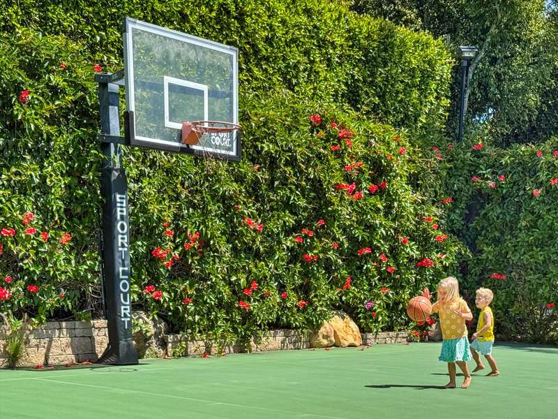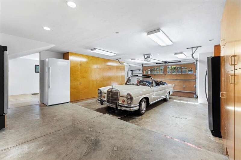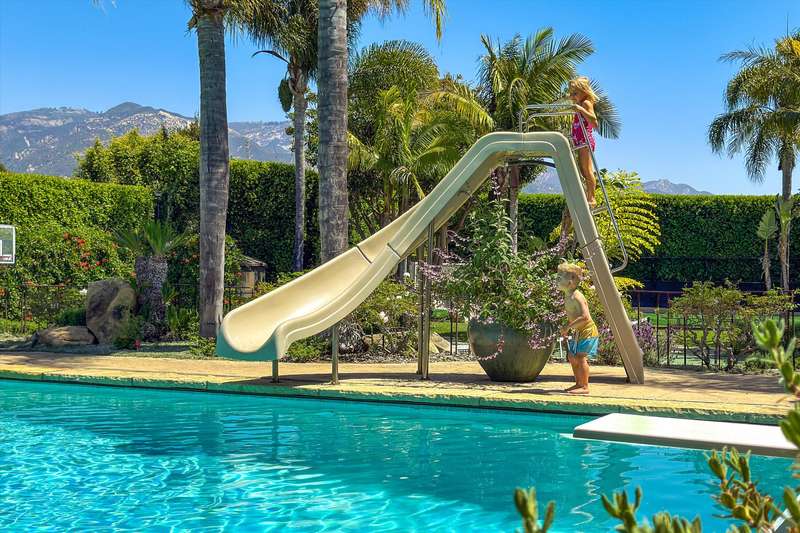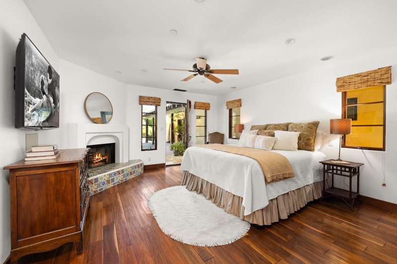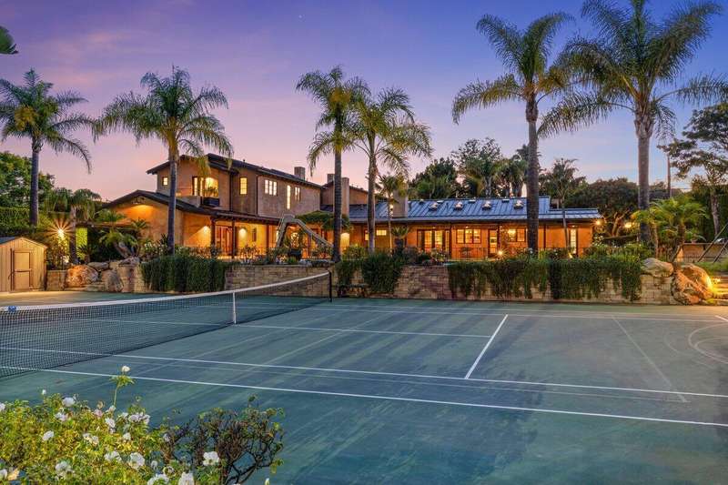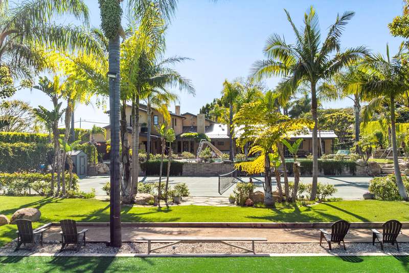 Custom-built Spanish Contemporary estate on a private 1-acre lot with lush, secluded landscaping. 6 bedrooms, 6 baths (4 ensuite) with flexible layout for multi-generational or dual-family living. Vaulted ceilings, hardwood floors, and custom built-ins throughout. Gourmet kitchen anchors the home with premium appliances. Outdoor amenities include oversized pool with diving board and slide, built-in BBQ and fire pit, tennis court, and turf field. 3-car garage, gated RV parking, and potential ADU conversion. Located in the coveted Mountain View Elementary attendence area on a quiet, non-through street, this estate combines tranquility with convenience.