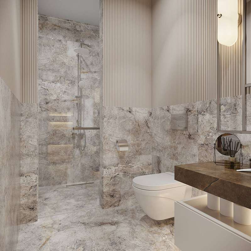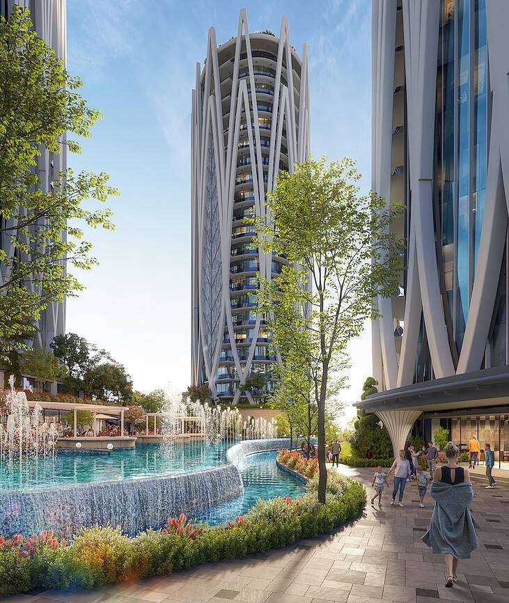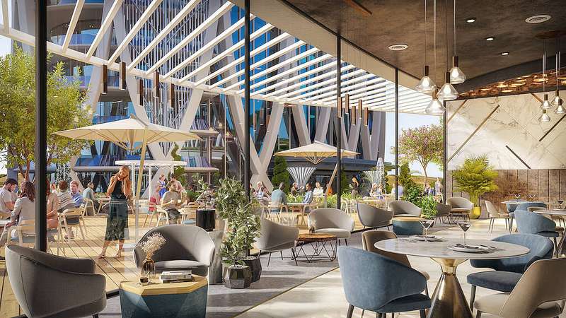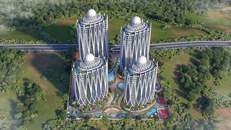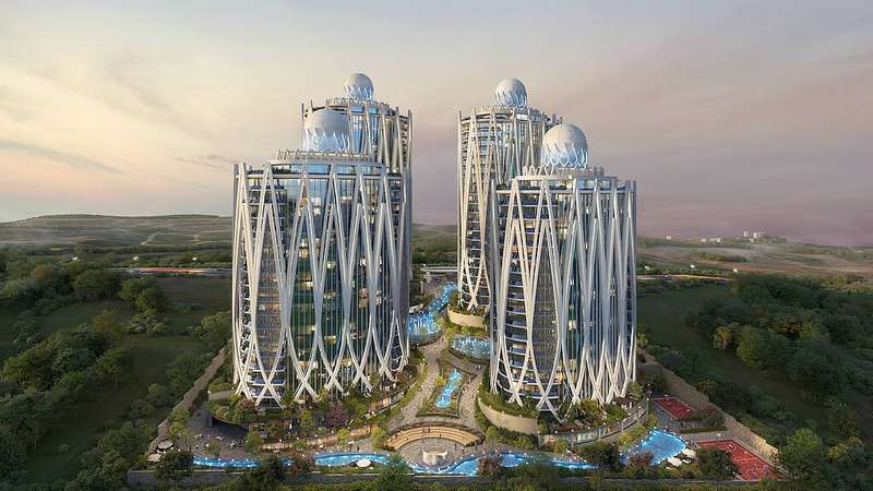 The project has 2 phases and 4 residential blocks in a total plot of 20,000 m². Along with a chic architectural design, the mega-compound offers various rich amenities for residents. These include an indoor swimming pool, large landscapes, a pond, a Turkish bath, fitness, steam rooms, a sauna, a playground, indoor parking, gazebos, 24/7 security, volleyball and basketball courts, hobby spaces, cafes, and restaurants.