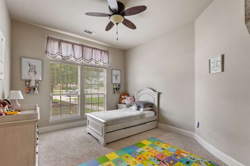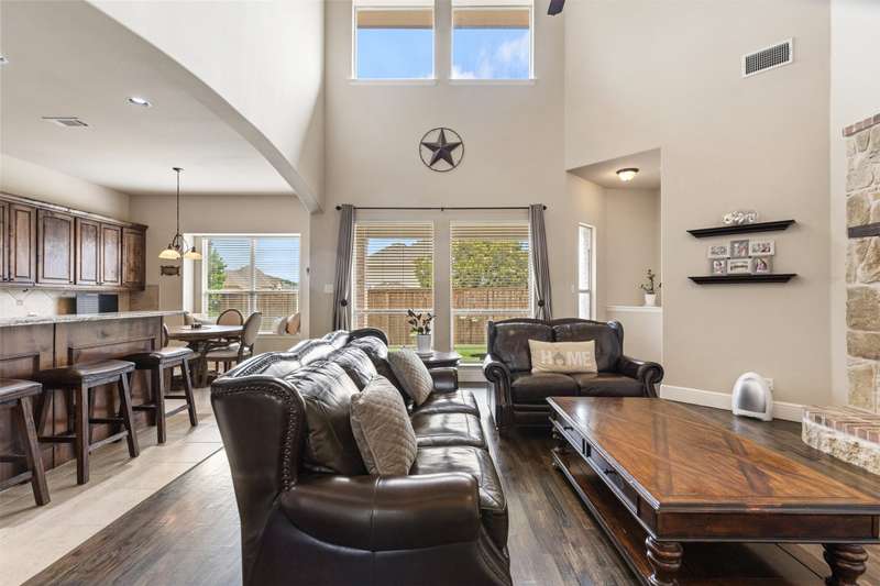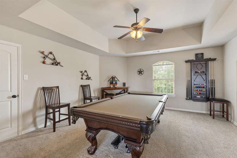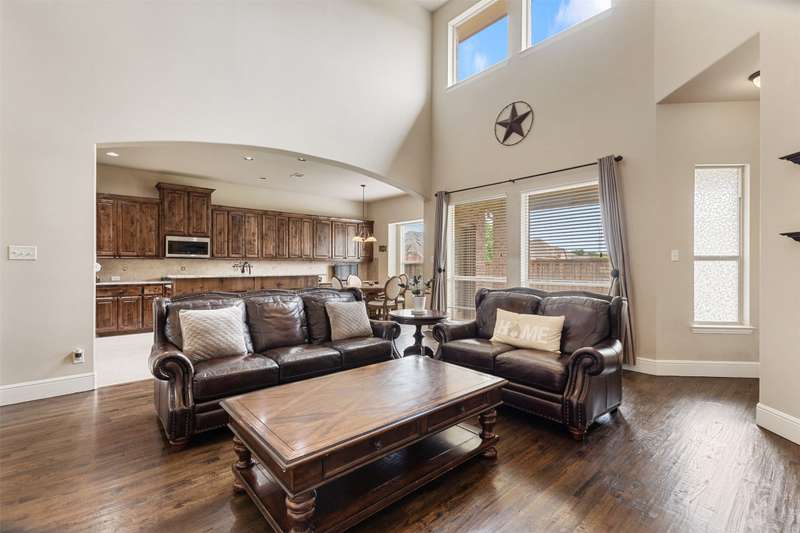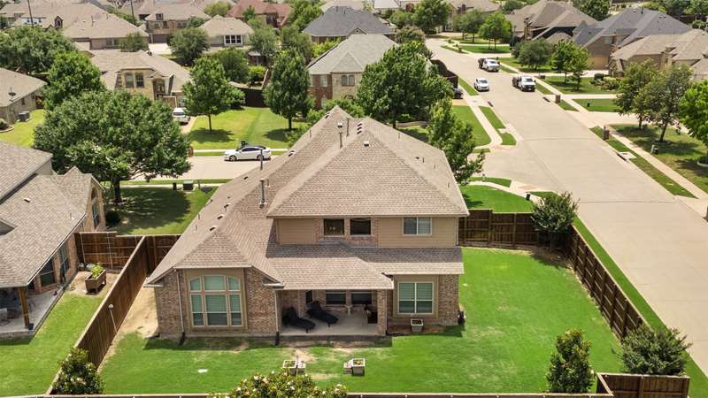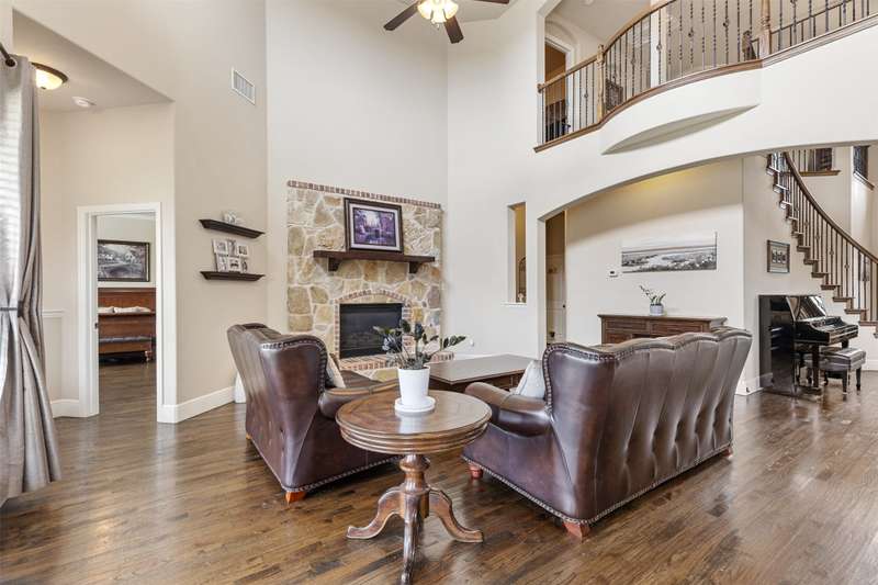 Location matters! You will love this elegant yet stately home set on a corner lot in the Chapel Hill neighborhood of Prosper. In a desired area near all the amenities and necessities a family will want while also not far from major roadways to make travel a breeze. Well cared for from the manicured landscaped yard to the warm wood flooring and neutral interior color palette. Open your front door to a soaring ceiling, spacious floorplan, and inviting views into major living areas. Off the entry, you will find office space overlooking the front yard. A few steps away, a rounding staircase, formal dining, and grand opening to the main family room. Large windows allow natural light to saturate main areas and each space seamlessly flows to the next. A stone fireplace adds a focal point for decor, conversation, or entertaining. The large eat-in kitchen with a breakfast bar, gas cooktop, double ovens, abundant storage, and ample counter space. Escape to your Primary Retreat with oversized en-suite and a walk-in closet to be envious of. The split layout has two bedrooms down and another two bedrooms up that share a connecting bathroom. Also upstairs you will find a game room and media room perfect for a hangout area. Downstairs is a large laundry room off the garage with extra storage. Don't forget the backyard with covered patio to enjoy that morning cup of coffee or evening conversation. The yard is spacious enough for play, furry friends, or gardens. This is a home that has something for every member of the family! Don't miss your chance to call it home.