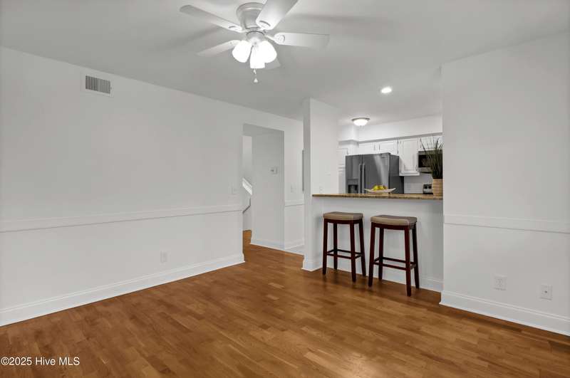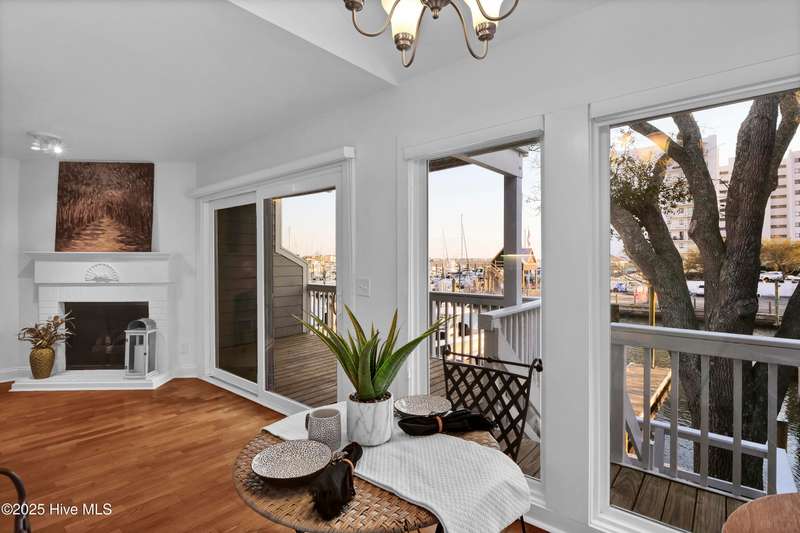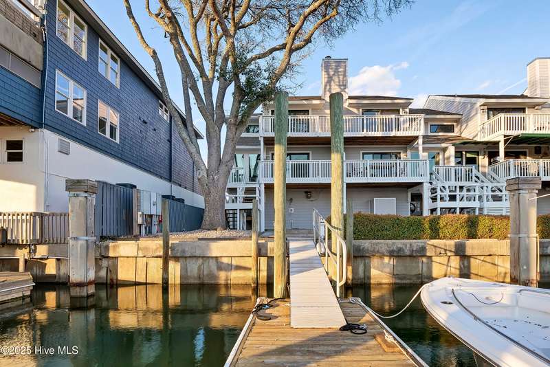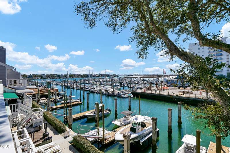 Unique opportunity to own a 3 Bedroom, 2.5 bath waterfront unit at The Moorings, Wrightsville Beach. A rare find with exceptional amenities. This property offers an unparalleled chance to own a spectacular end unit. This excellent waterfront unit boasts a 55 ft. boat slip, conveniently located just steps from your door. The slip is protected with concrete pilings, ensuring the safety & security of your vessel. This location provides magnificent views of Motts Channel & Seapath Marina. Additionally, it is located across the street from the Wrightsville Beach Loop & nearby park with playground, fitness center, tennis & pickleball courts, summer concerts and the farmers market. This Beautifully designed home offers a well thought out floor plan with hardwood floors on the main level. The living room is adorned with bookshelves & a gas fireplace, creating a cozy and inviting atmosphere. A quaint study, is perfect for work or a relaxing afternoon read with mesmerizing views of the water & sun. The kitchen is equipped with stainless appliances, a pantry and a bar open to the kitchen and dining room. The dining area features views of the park and the loop, making it an ideal space to enjoy meals & gatherings. The laundry room is conveniently located off the living room. The full laundry room offers greater ease and convenience compared to a laundry closet. The spacious, luxurious primary suite is on the upper floor with breathtaking water views and an upper deck, providing a serene and tranquil space to unwind. The presence of a beautiful oak tree in the common area adds to the tranquility and charm of this special spot. Don't miss out on this unique opportunity to own a unit at The Moorings. With its exceptional location, stunning views, and well designed living spaces, this home is truly a special place to call your own! Do not delay in seizing this rare offering of a Moorings end unit!