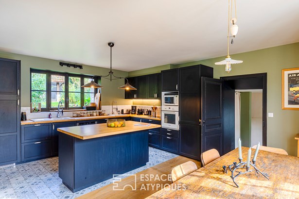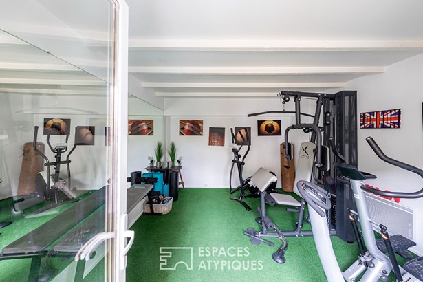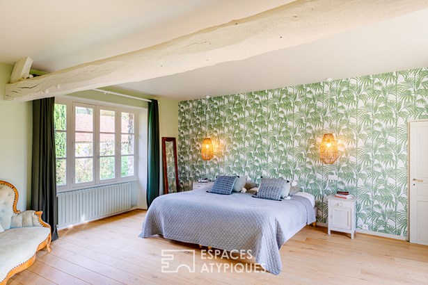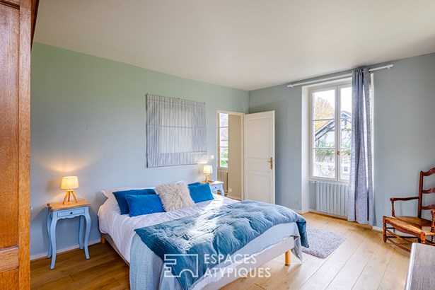A renovated carriage house, an elegant indoor swimming pool, and numerous amenities such as a sauna, stables, a gym, and a laundry room complete the property. At the rear of the buildings, an English garden with its various distinct areas offers a labyrinth of rare tree species, where a majestic Ginkgo Biloba stands proudly.