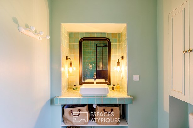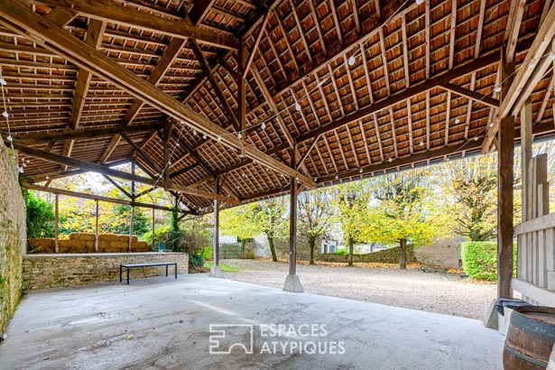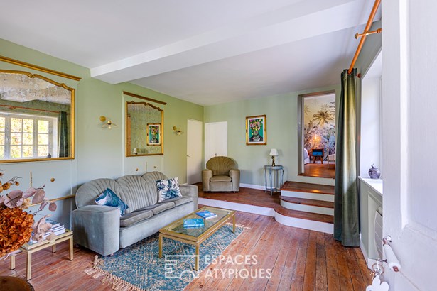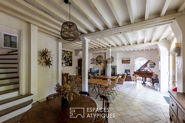 A second building houses a charming, old-fashioned inn of over 50 square meters on the ground floor, complete with a catering kitchen. Upstairs, a large reception room of approximately 115 square meters features exposed beams, ideal for hosting events and ceremonies. Within the two other courtyards, several independent suites are available to accommodate friends, guests, or clients seeking an authentic experience.
