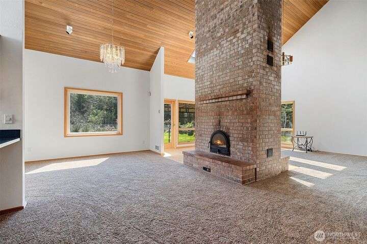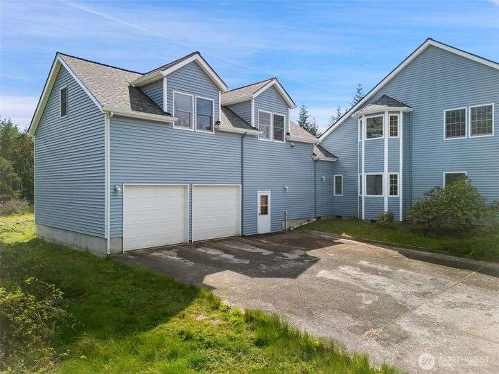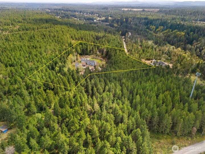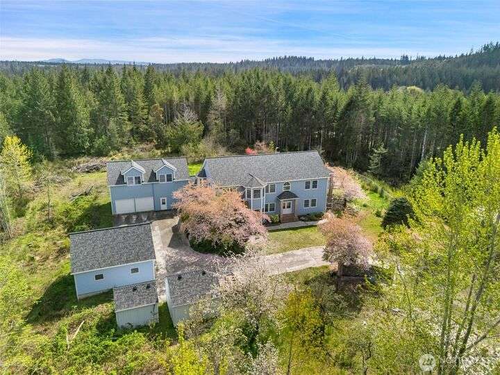 Estate in the Forest! This dramatic custom two-story home situated on 6.47 acres offers over 4,400 SF of living space with a main floor primary suite and stunning cedar-beamed vaulted ceilings w/multiple skylights. A spacious 2nd floor loft makes a perfect home office, hobby room, or den. At its heart, a striking floor-to-ceiling Russian fireplace anchors the living area, while a south-facing sunroom invites warmth and relaxation year-round. Spacious rooms throughout, huge bonus room above the garage. 3 bedrooms & 3 baths. Recent updates include roof and siding. Outside: experience a private setting with fenced backyard, 26x25 detached shop, paved driveway, and 4 tax parcels that offer much potential. Nearby Hood Canal, Olympics and SR 101.