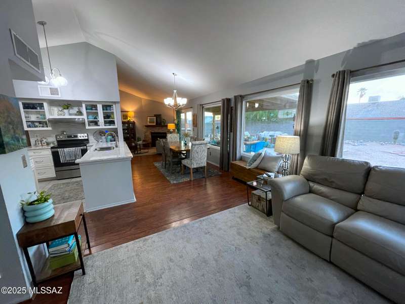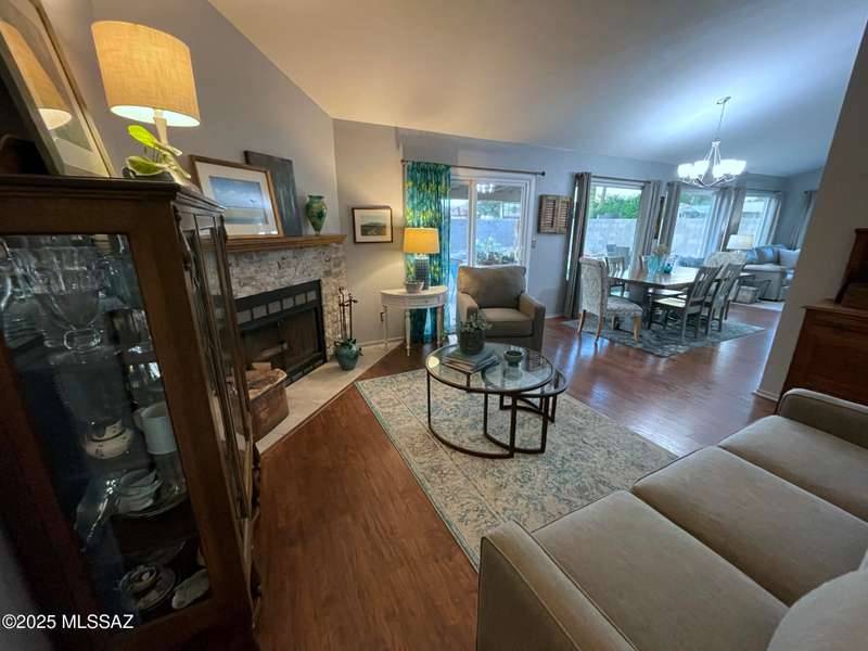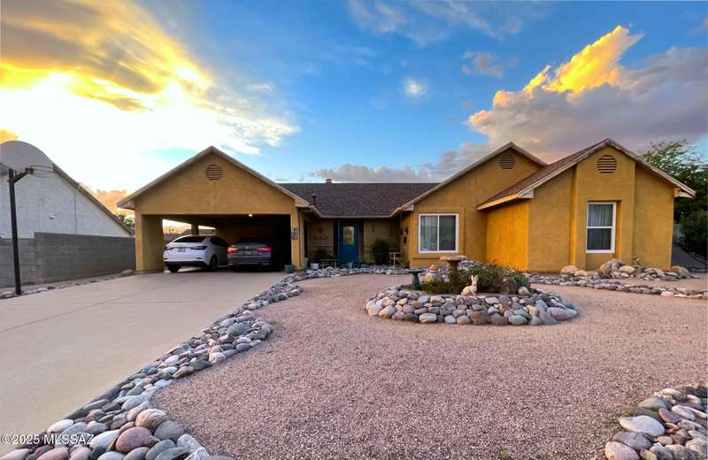Welcome to Countryside--where comfort meets convenience in the desirable Marana School District! Enjoy all that Twin Peaks, the Tucson Premium Outlets, and Upper Oro Valley have to offer--right at your doorstep. This well-loved home features four bedrooms, an updated primary bath, granite countertops, laminate flooring, and a two-car carport. The spacious living, dining, and family areas flow seamlessly together, anchored by a charming wood-burning fireplace. Step outside to a generously sized backyard with stunning westward views of Sombrero Peak and eastward to Pusch Ridge--there's even room for a pool or spa if you wish! Situated on a prime corner lot with no HOA, this home offers both privacy and possibility. It's been lovingly maintained and is ready for you to move right in.