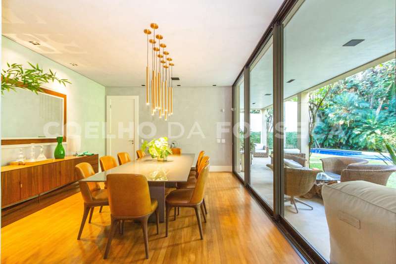 No segundo piso , living maravilhoso com vista para agradavel piscina e jardim. Sala de jantar com acesso direto a cozinha ,facilitando os encontros em familia.
