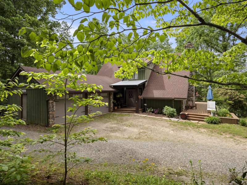 Private mountain retreat in the highly sought after Bent Creek area. This unique, light filled, A-frame style home is full of character and sits on just over an acre of unrestricted land with mature landscaping. The main living area features a towering stone fireplace, flanked by windows and emphasized by the cathedral ceiling. The outdoor spaces allow you to be immersed in nature and include a wrap around Trex deck with custom cedar benches and an inviting front porch. There is an abundance of storage between the attached 2 car garage and full unfinished basement with workshop space. All this in an unbeatable location only a stones throw from the Bent Creek experimental forest section of Pisgah National Forest with easy access to the NC Arboretum, Blue Ridge Parkway, French Broad River Access, Biltmore Estate and all of the amenities of West, South and Downtown Asheville. Newer zoned heat pumps (2020) and updated bathrooms. Additional 1.03 acre lot also available for purchase.