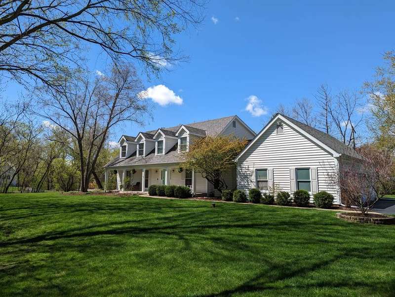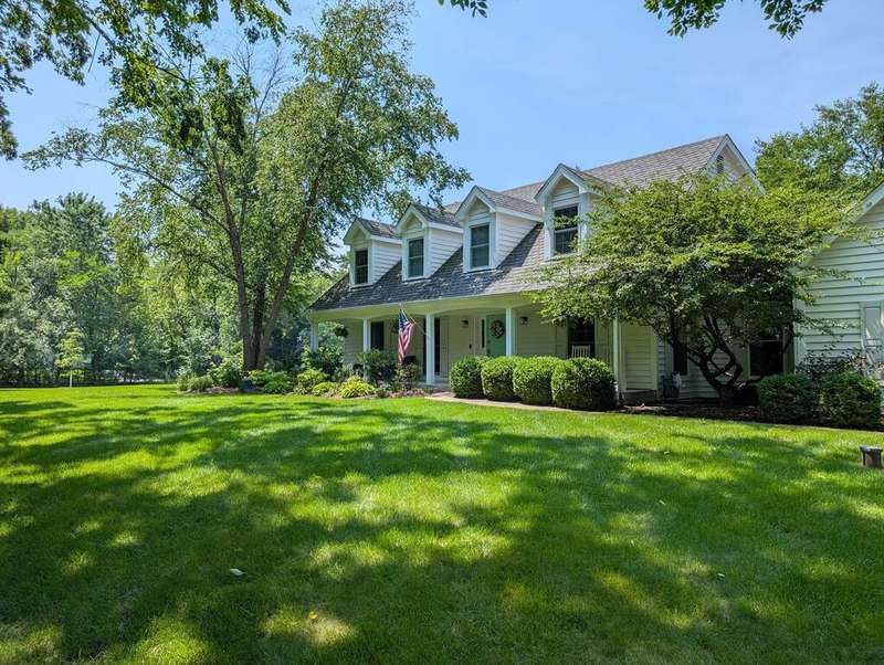 Welcome to this beautiful Cape Cod on almost 1 acre of private and tranquil land. Wonderful classic floor plan offers over 4,000 sq. ft. of total finished living space. Recently remodeled kitchen includes beautiful quartz countertops, white shaker cabinets, and stainless steel appliances. Kitchen includes eating area with direct access to deck and is open to the family room, which offers a beautiful bay window, wood burning fireplace and beamed ceilings. Great home office located off the kitchen. Family room, formal dining and entryway foyer includes beautiful new hardwoods. Three car garage includes EV charging and access to additional storage space in the walk-up attic! Enjoy the views of your yard and natural light with the floor to ceiling windows throughout the main level. Primary suite offers an en-suite private bath with double sink, walk-in shower and a fabulous whirlpool tub and huge walk-in closet. All the bedrooms are very spacious and include walk-in closets. Recently finished basement offers additional living space and separate work-out area and tons of additional storage. Tons of updates throughout the home including newer roof, HVAC, water filtration system, septic, upstairs windows, and more! Highly desirable location that's steps to the popular dining and shopping at Deer Park, downtown Barrington, and quick access to Route 53!