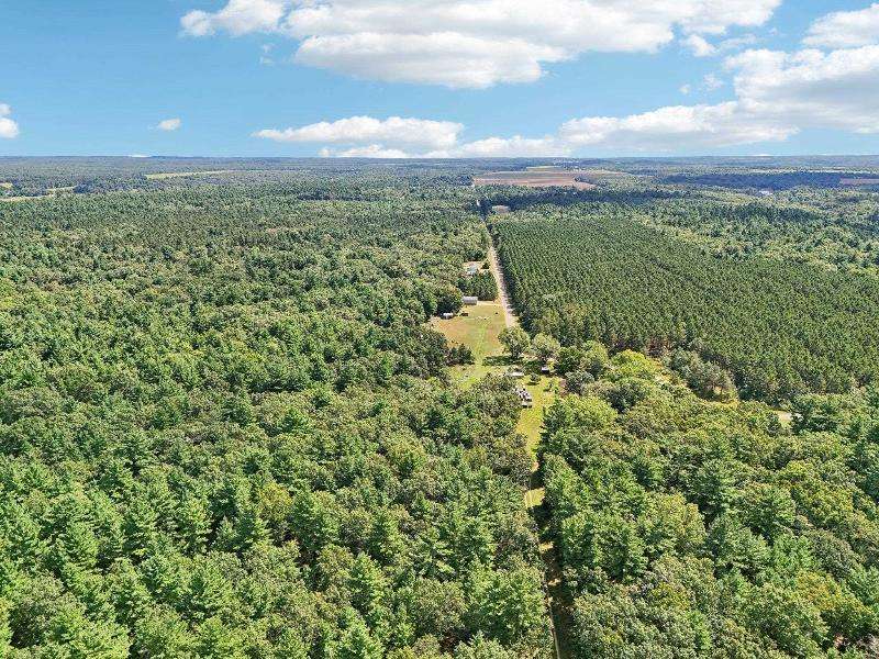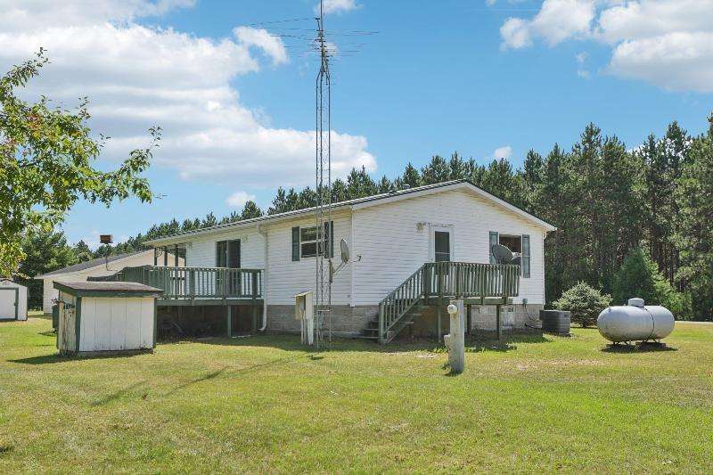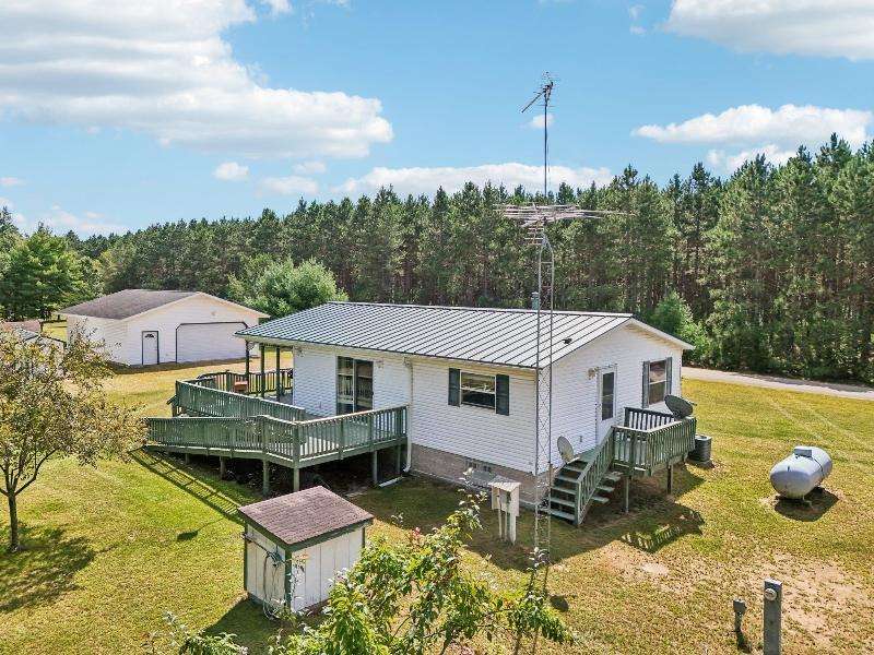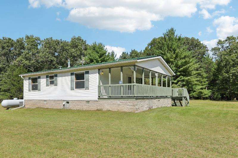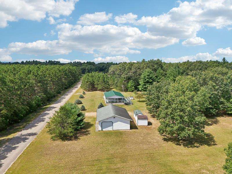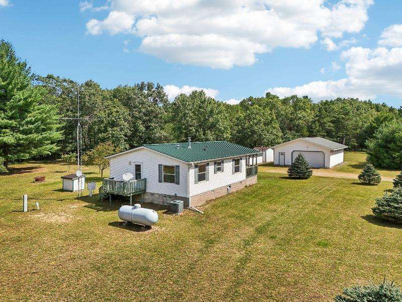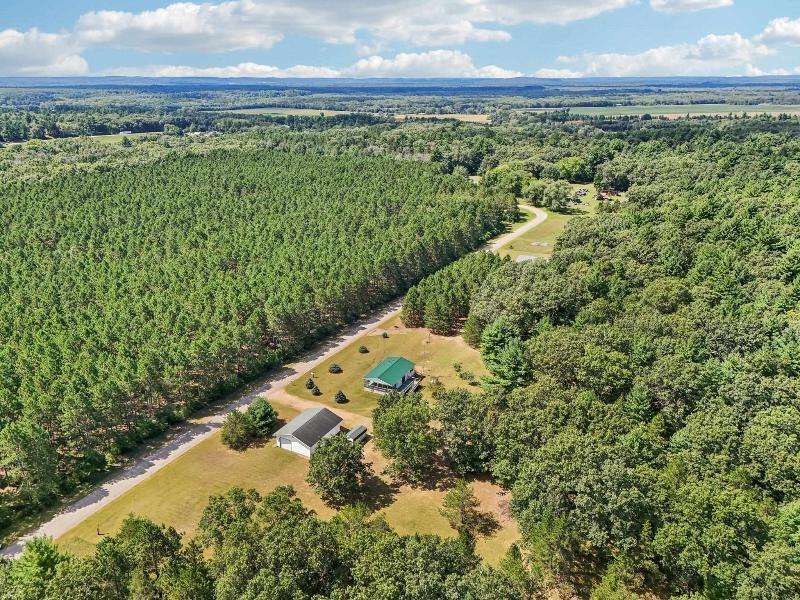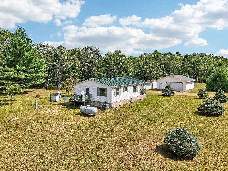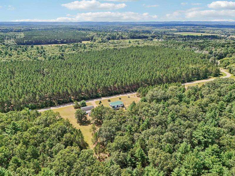 Escape to your fully furnished 2-bed, 1-bath retreat on 10 wooded acres near Wisconsin Dells! Surrounded by mature pines, fruit trees, and record-size deer, this insulated year-round home is perfect for nature lovers. Enjoy two decks with a ramp for easy access. Includes a 36x28 detached 4-car shed, two additional sheds, lawnmower, and snowblower. Don't miss this private getaway!