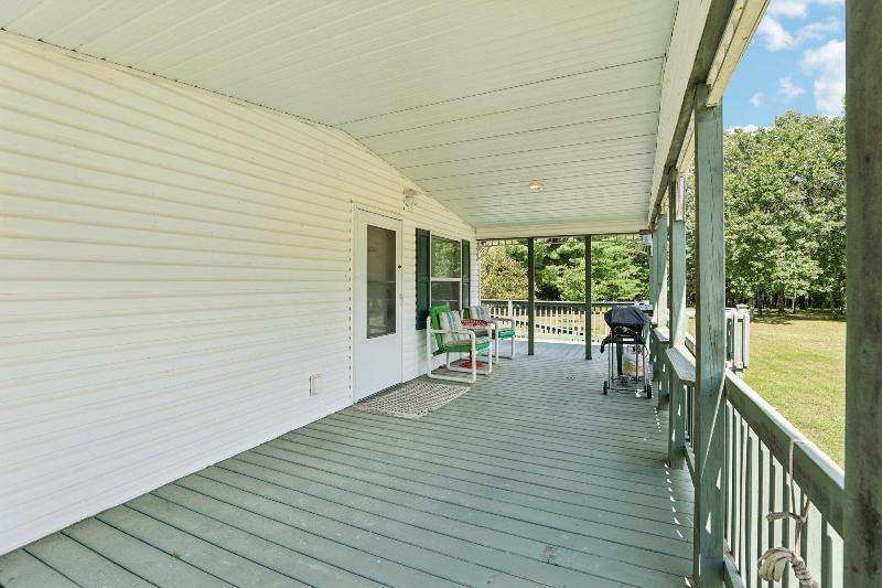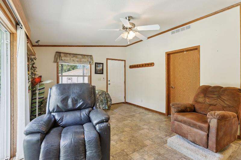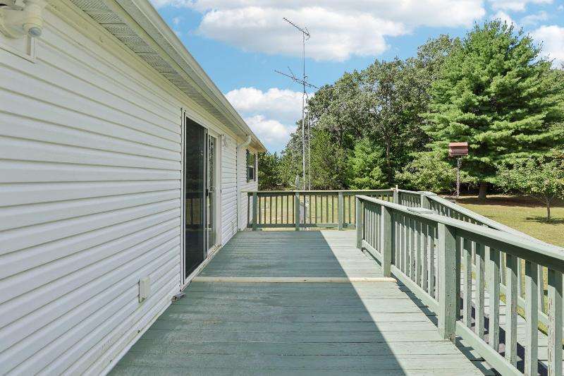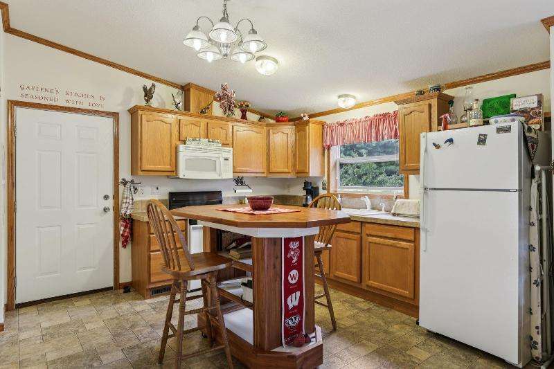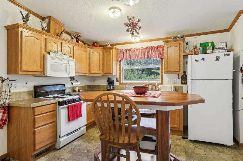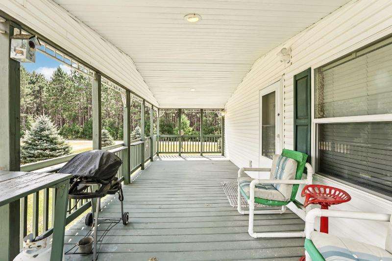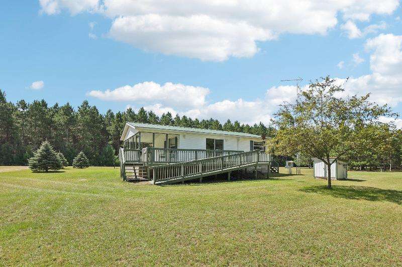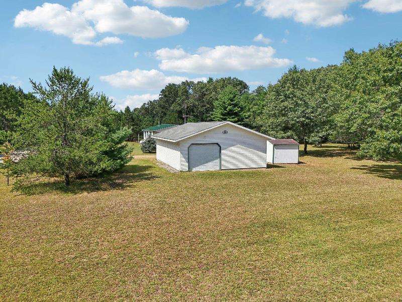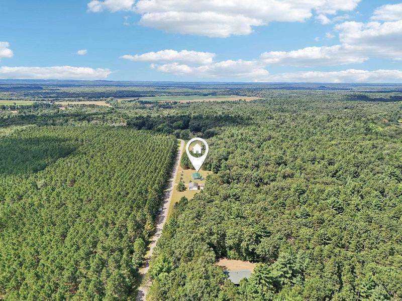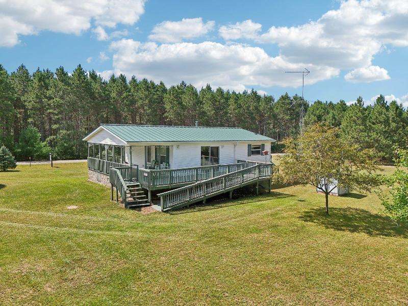 Escape to your fully furnished 2-bed, 1-bath retreat on 10 wooded acres near Wisconsin Dells! Surrounded by mature pines, fruit trees, and record-size deer, this insulated year-round home is perfect for nature lovers. Enjoy two decks with a ramp for easy access. Includes a 36x28 detached 4-car shed, two additional sheds, lawnmower, and snowblower. Don't miss this private getaway!