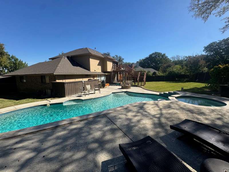 Updated Highland Shores 2 Story with Pool. This 3-bedroom, 2.5-bath, 2-car garage home has been updated floor to ceiling, offering a large living room that is open to the kitchen. 2 Bedrooms downstairs with a private bath. Huge upstairs primary suite offering a large bath with separate shower and tub, and an outdoor balcony with a wonderful view of the large backyard. Very nice pool and spa. Firepit for cool nights under the covered patio makes this home a must-see. Great schools and close to shopping in every sort.