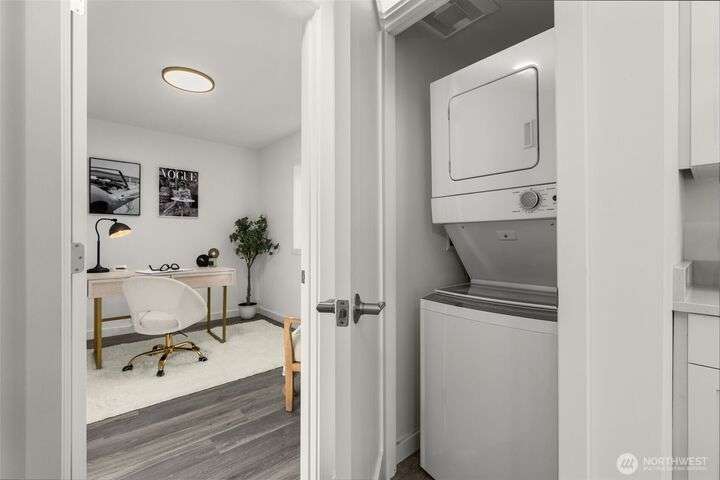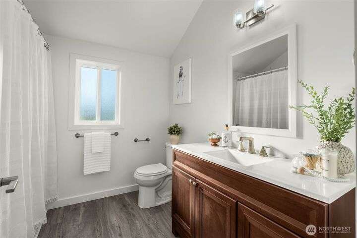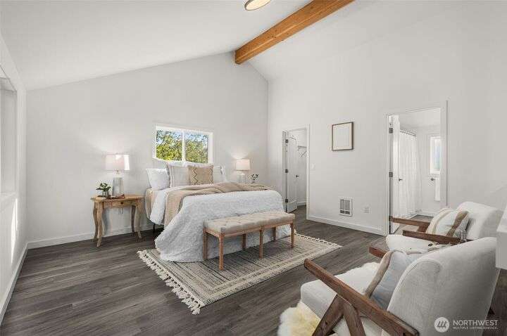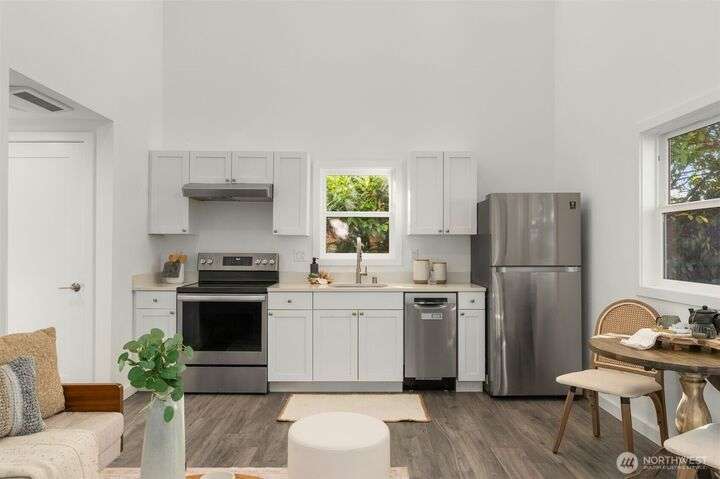 Tucked in a private setting back from the main street, the 'Capitol Cottage' as built by MyKabin is an efficient Built Green 2023 standalone home with no shared walls. A stone pathway leads to this 2-story detached home, with welcoming covered front porch. Enjoy a 2-story open greatroom w easy flow and connectivity in the living room, dining area, and kitchen. Natural light throughout this home offering two bedrooms + full bath on the main level. Head upstairs to a lofted Primary Suite large enough for a king size bed, with it's own walk-in closet & full bath ensuite. Private patio, fully fenced, In-unit laundry & Off-Street parking. Convenient location just mins to Broadcast Coffee, Powell Barnett Park, or drop your SUP in Lk Wa at Leschi!