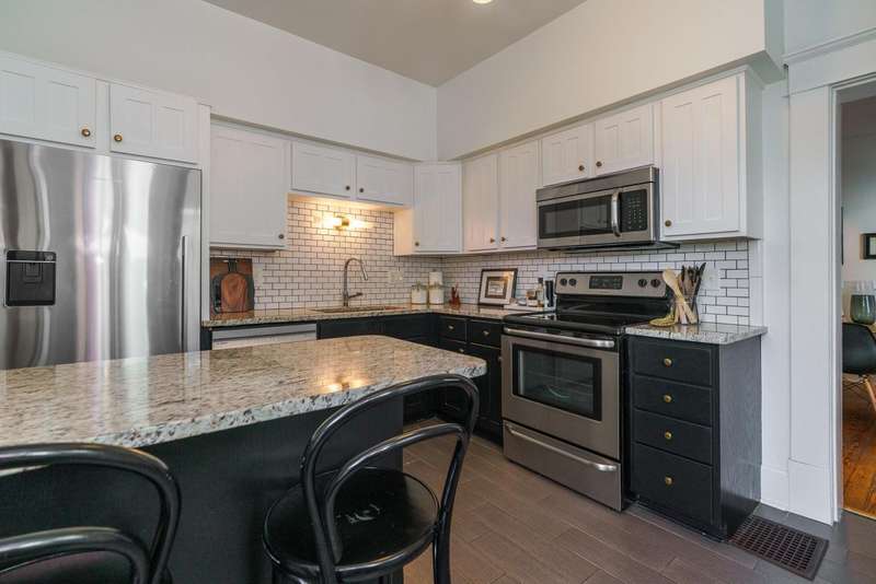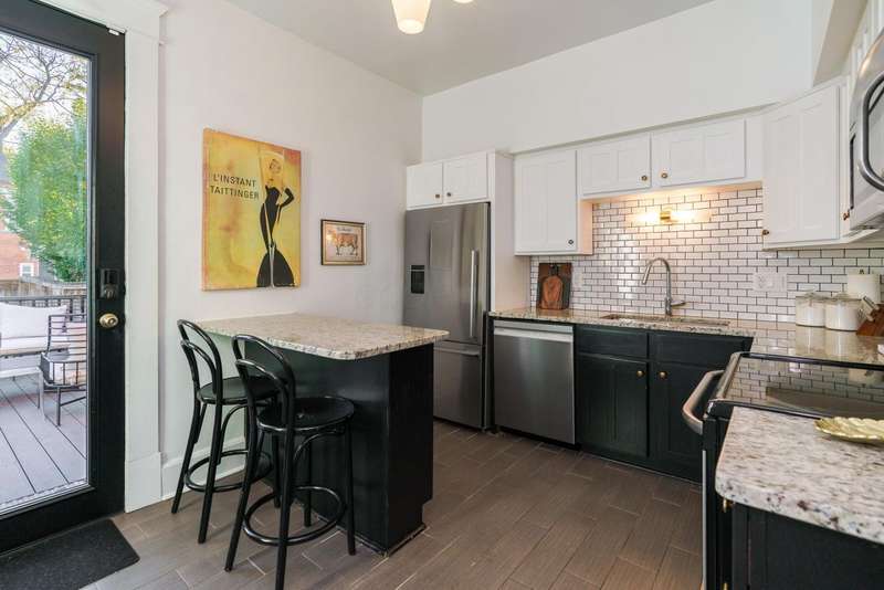 CHARMING AND ELEGANT 3-story townhome ideally located in Merion Village - just south of German Village and only steps from Fox in the Snow, restaurants, and Schiller Park. This BEAUTIFULLY MAINTAINED AND UPDATED condo features original wood floors throughout most of the home, a living room with decorative fireplace, and a separate dining room with a CUSTOM BUILT-IN BAR CABINET. The lovely eat-in kitchen offers granite countertops, island seating, and stainless steel appliances. Enjoy EXCEPTIONAL OUTDOOR LIVING with a newer composite upper deck, fenced paver patio, and landscaped garden. A convenient first-floor half bath and one off-street parking space. Upstairs includes two bedrooms and a charming full bath, while the BONUS THIRD FLOOR PROVIDES a private guest suite with separate HVAC and full bath. MAJOR UPDATES INCLUDE new windows (2023), interior paint (2021), lighting (2022), custom bar (2023), TimberTech deck and patio (2022-23), Fisher & Paykel refrigerator (2024), Bosch dishwasher (2025), and more???SEE FULL LIST ATTACHED.
