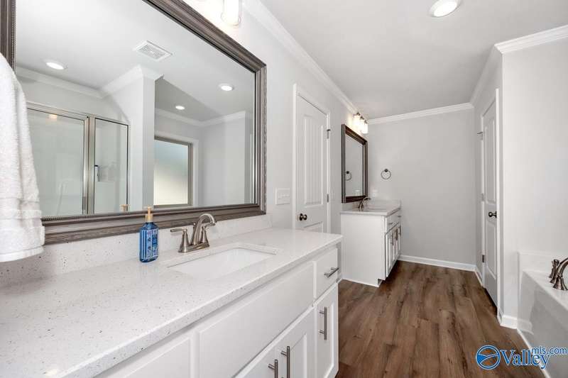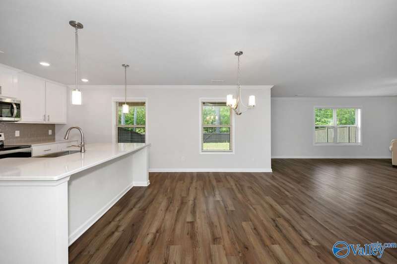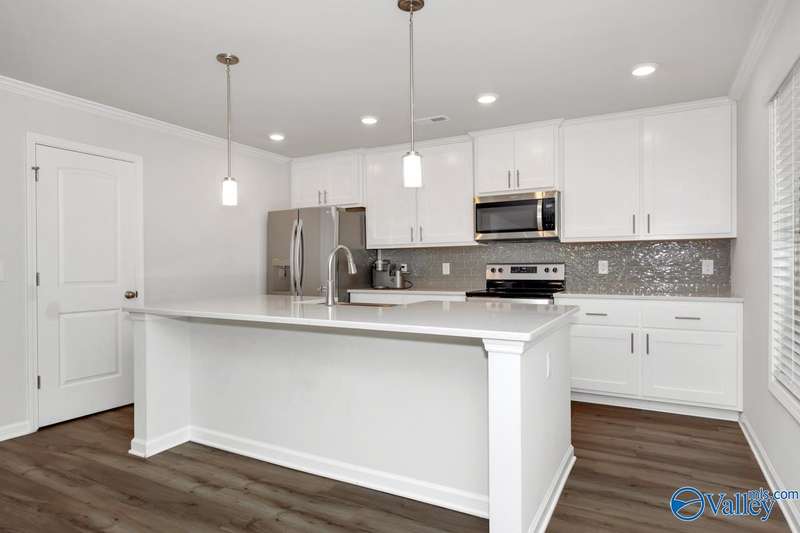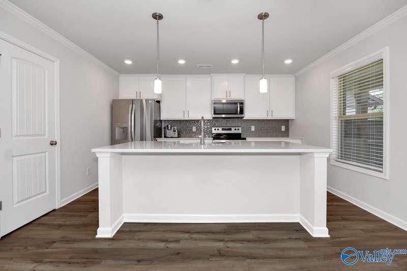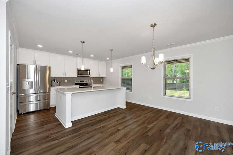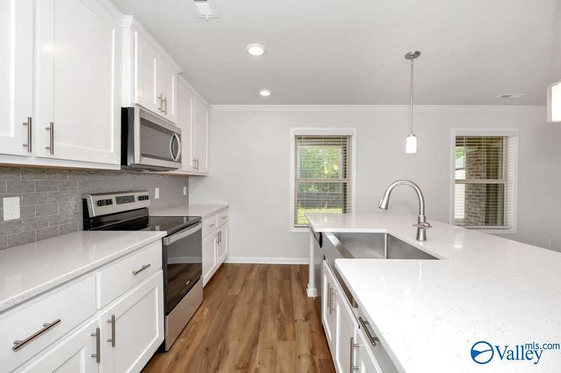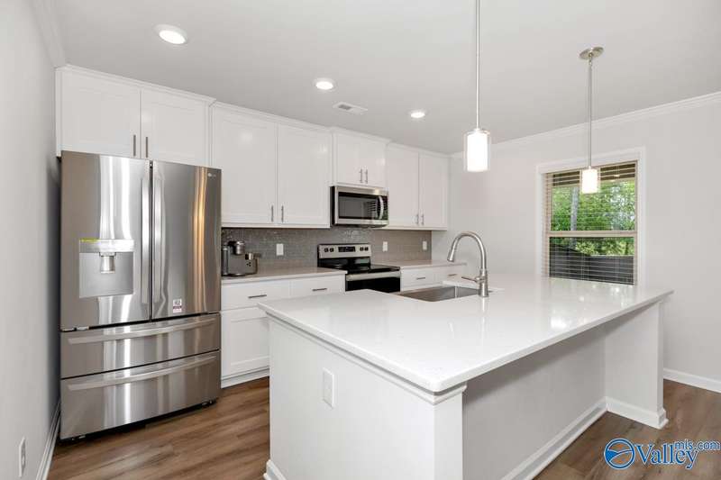 Like New! Check out this move in ready brick home in Owens Crossroads, AL. Built in 2023 this 3060 Sf, 4 BR, 3.5 BA home is only 2 years old & features a private home office w/French doors, an open-concept kitchen with lux finishes like white quartz countertops, gray subway tile backsplash, a spacious island & walk-in pantry. You will love this open kitchen that looks right into the large family rm & dining area plus it has easy access to the backyard. Durable LVP flooring throughout main level. Upstairs has 4 BRs, 3 BAs, playroom & laundry room. Insulated 2-car garage & a fully fenced backyard, sidewalks & lake make this neighborhood a great place to call home!