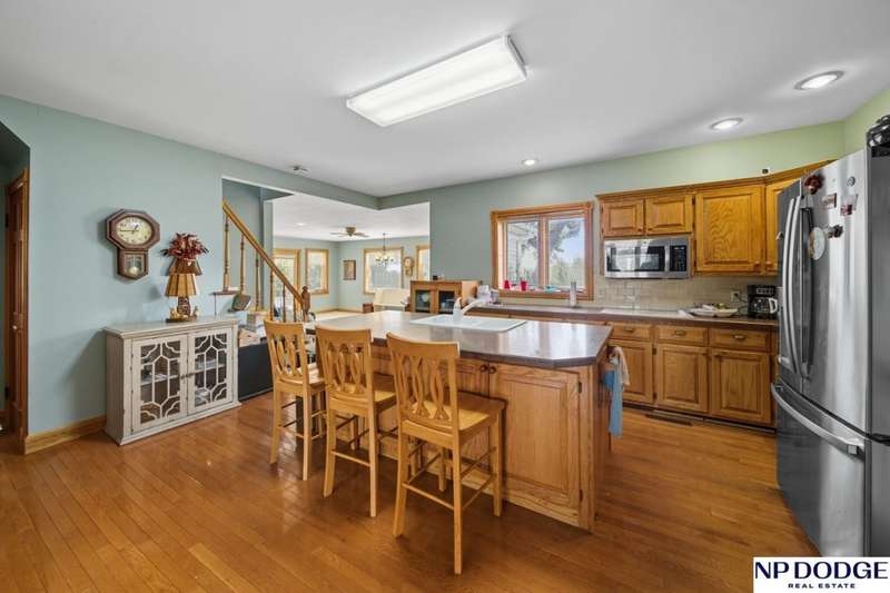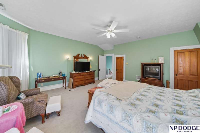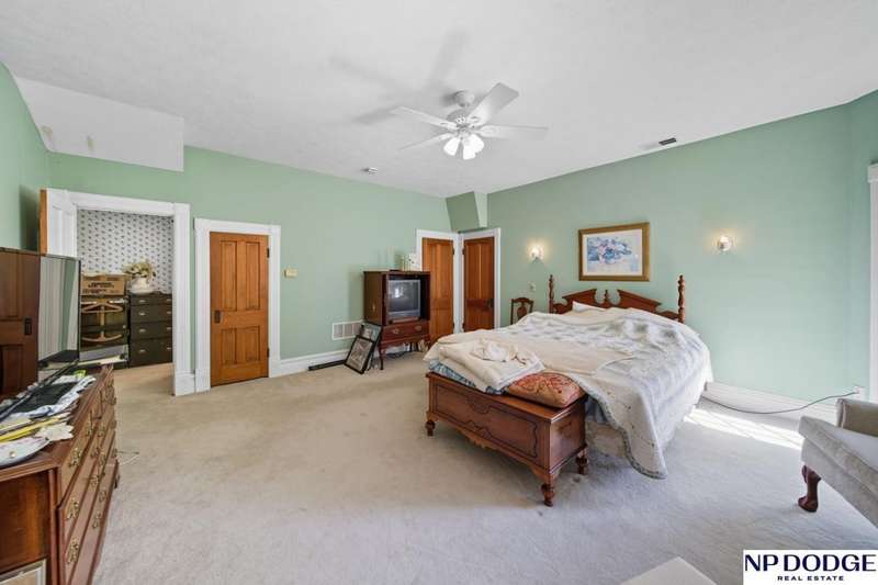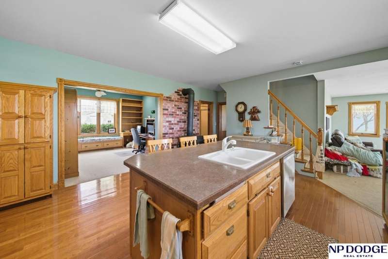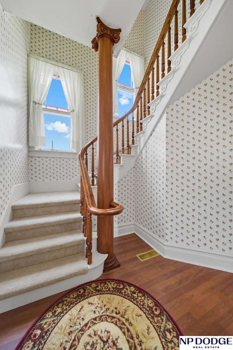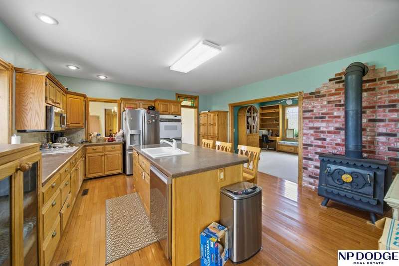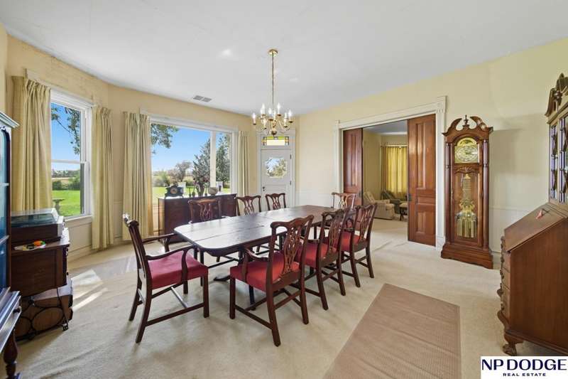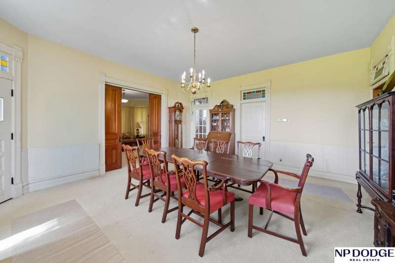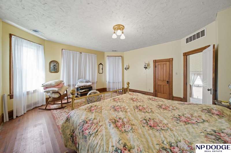 Step back in time with this stunning 1904 home set on nearly 6 acres. The wrap-around porch, adorned with gingerbread accents and freshly painted peaks, welcomes you home. Inside, over 3,800 sq ft of finished living space offers 5 spacious bedrooms plus a library or office, each with generous closet space. The gorgeous staircase makes a great first impression in the front entry, while stained-glass transition windows, a cozy fireplace, and a wood-burning stove add warmth and character. The kitchen features some newer stainless steel appliances, a center island, and abundant cabinetry. Enjoy the mix of parquet and wood flooring, main floor laundry, and a mudroom with locker-style storage. With vinyl siding, a new roof, many vinyl windows, and rural water, this property offers the perfect balance of history and beauty.
