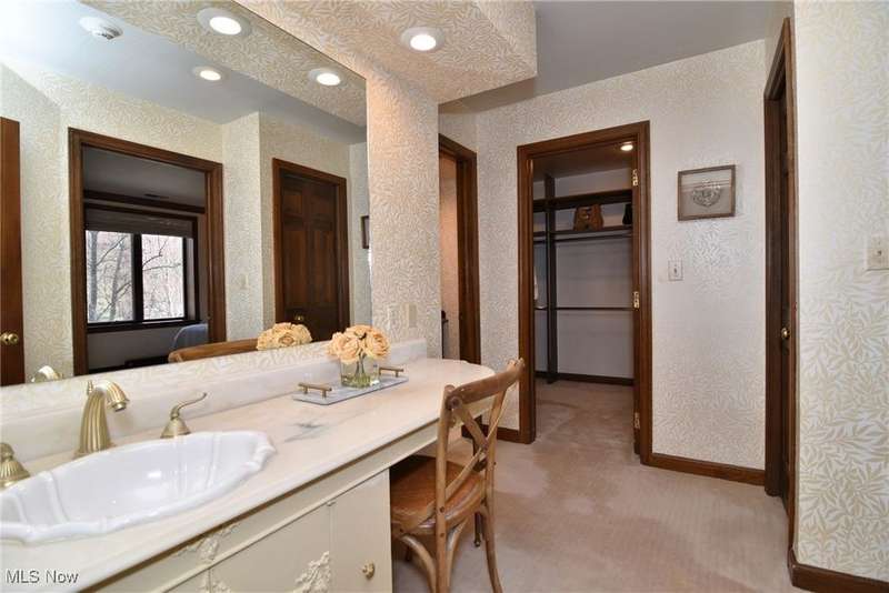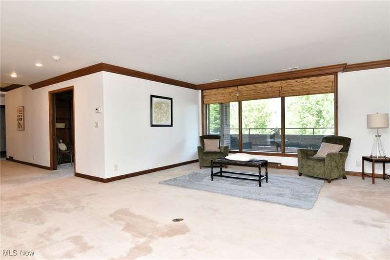 Terrific 2-bedroom, 3 full bath suite, with ideal, desirable floor plan, in the premier Three Village condominium community. Light and bright, spacious condo features large living room and adjacent dining room with picture frame and crown molding. Eat-in kitchen with wood cabinets, granite counter tops offers ample storage and counter space. Primary bedroom with multiple wall closets and large walk-in closet, dressing area and ensuite bath. Suite includes a second bedroom, desirable family room/den/office with built-ins and an inviting porch. In-suite laundry room. Fresh neutral look in living and dining rooms. Storage space assigned to condo. Surrounded by natural beauty, Three Village sits on 25 acres located next to 150-acre Acacia Reservation Cleveland Metro Park. Three Village features a great lifestyle - 24 hour security, heated indoor pool, 2 exercise rooms, tennis courts, guest suites, reserved indoor parking (2 spaces), maintenance staff, party and conference rooms. Great location - conveniently located close to shopping, restaurants, Country Clubs, Cleveland Clinic and University Hospital and Circle, Cleveland's cultural hub.